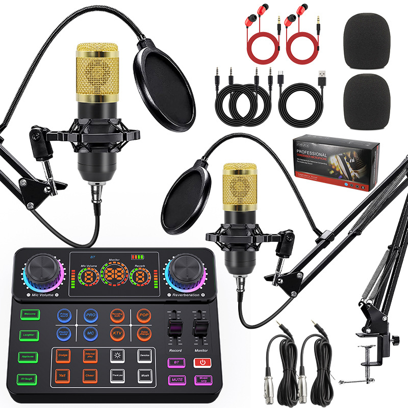 • 메탈릭 골드 듀얼 마이크 + F998max 사운드 카드 + 헤드폰 세트