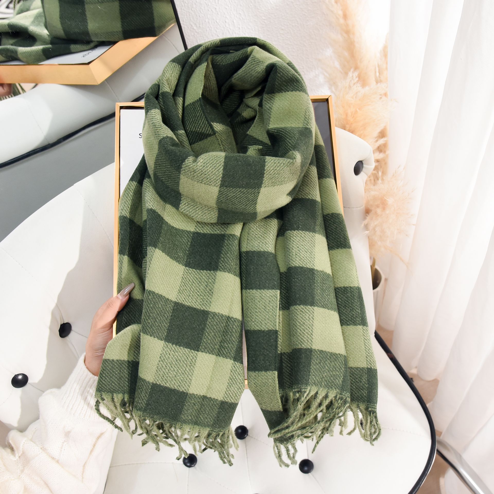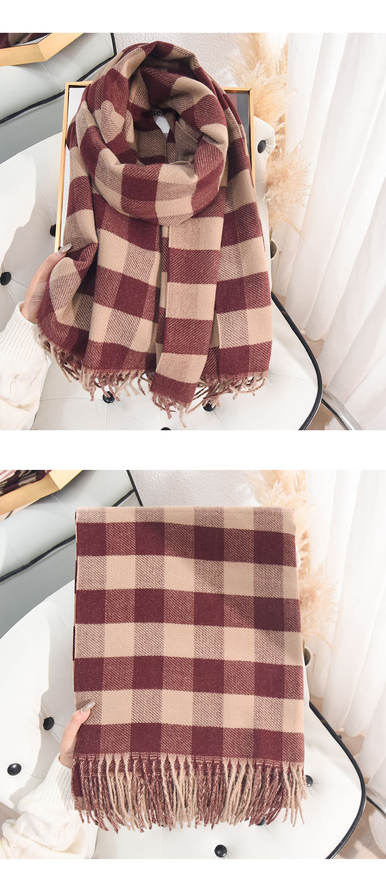 스카프 가을과 겨울 분위기 센스 캐시미어 양면 격자 무늬 스카프 일본과 한국 여성의 따뜻한 아우터 목도리 심플 스카프
