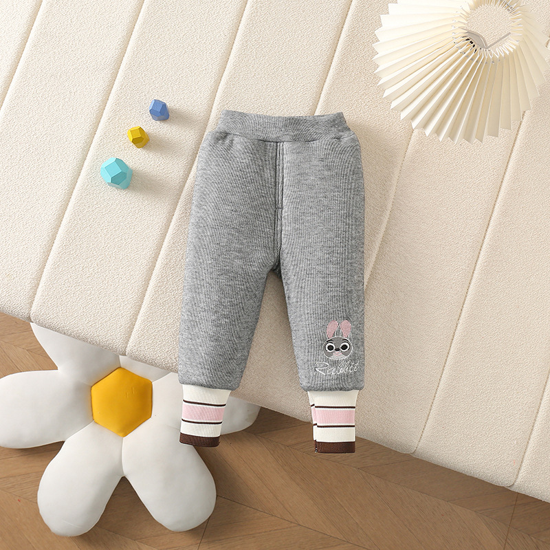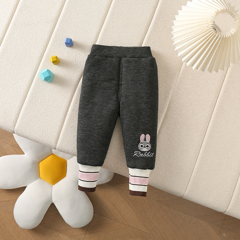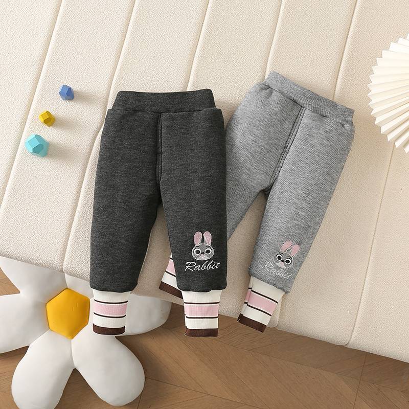 가을과 겨울 아기 기모 두꺼운 따뜻한 스트레치 서양식 외부 착용 레깅스 자수 토끼면 바지