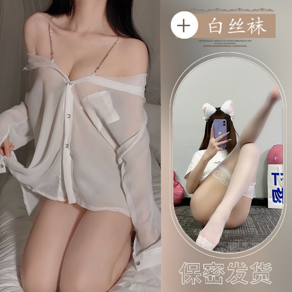 섹시한 속옷 유니폼 섹시한 순수한 욕망 남자 슬링 셔츠 작은 가슴은 큰 남자 친구 셔츠 순수한 매력을 보여