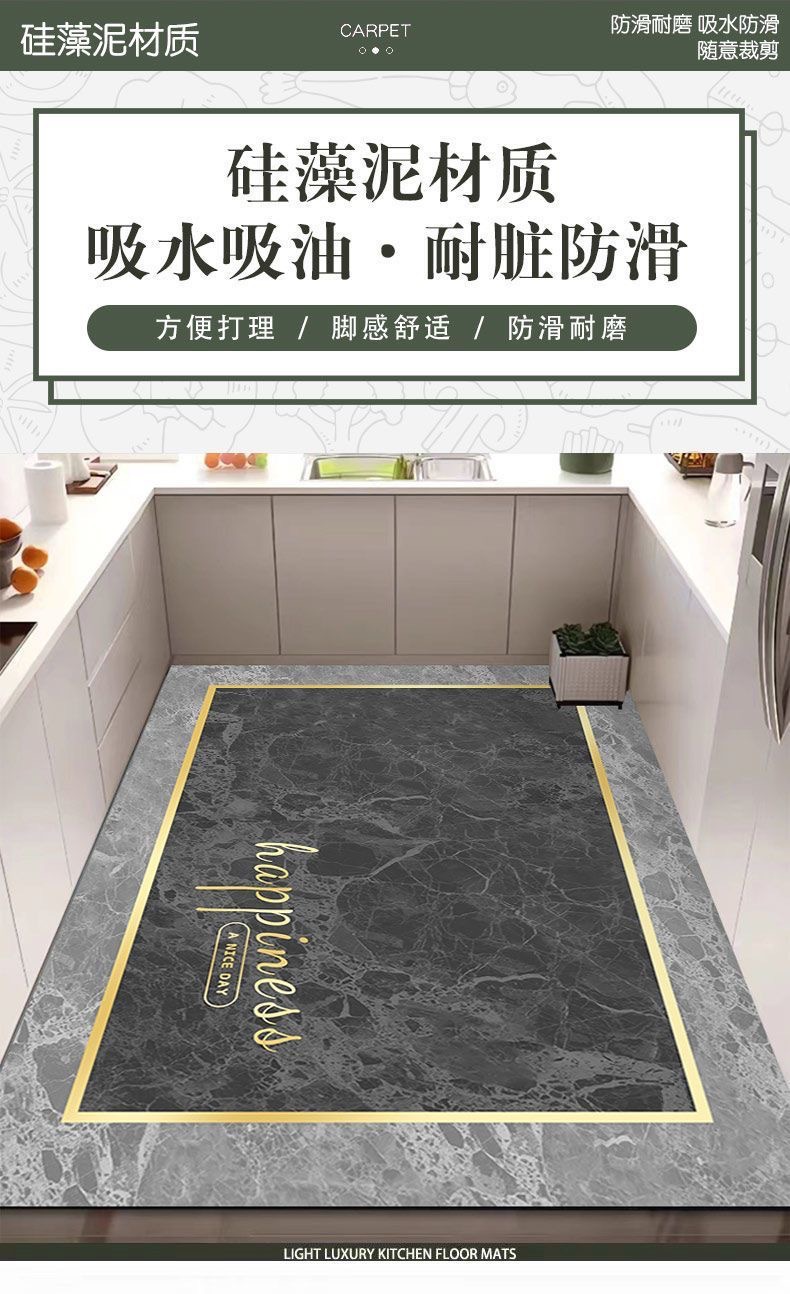 간단한 고급 Diatom 진흙 흡수성 바닥 매트 가정용 주방 오일 미끄럼 풀 샵 플로어 매트 입구 더러운 도어 매트 흡수