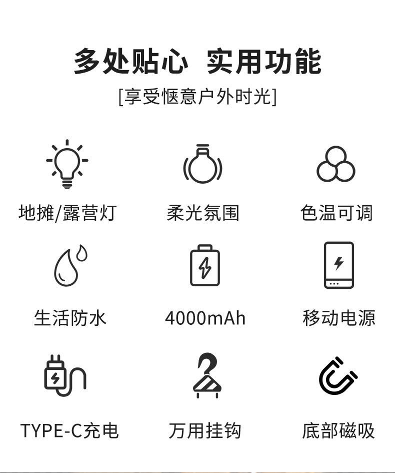 야외 캠핑 라이트 충전식 LED 다기능 자기 텐트 라이트 후크 조명 긴 내구성 비상 매달려 조명
