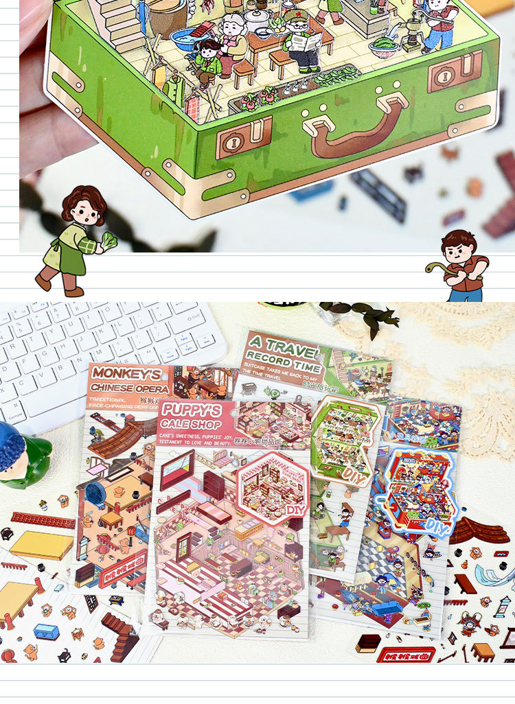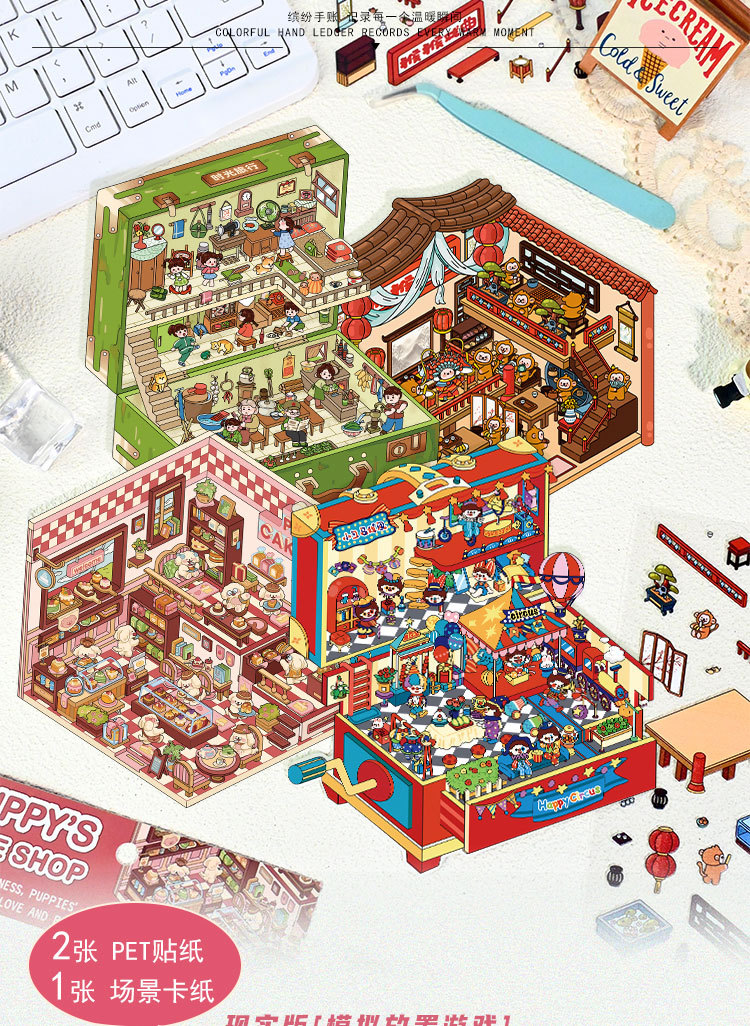 Senyou 4.0 새로운 스토리지 조경 객실 스티커 diy 스테레오 미니어처 장면 3D 스티커를위한 국경스토어 가기