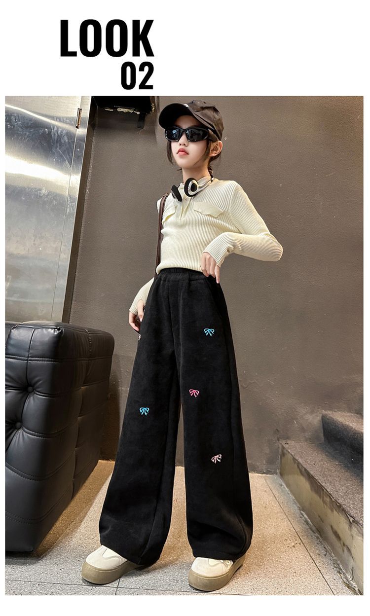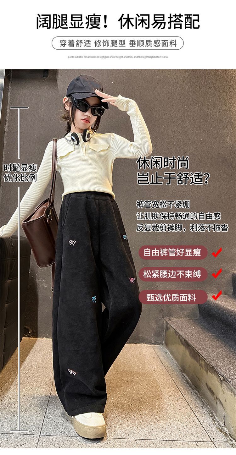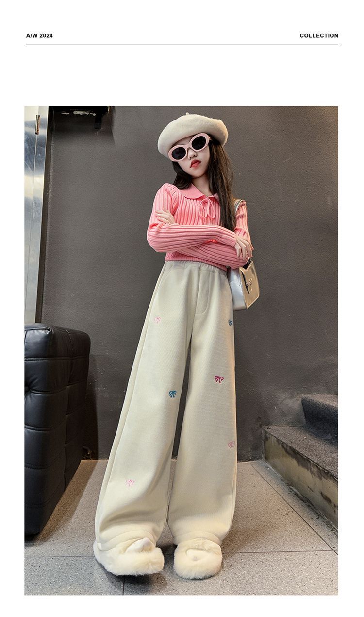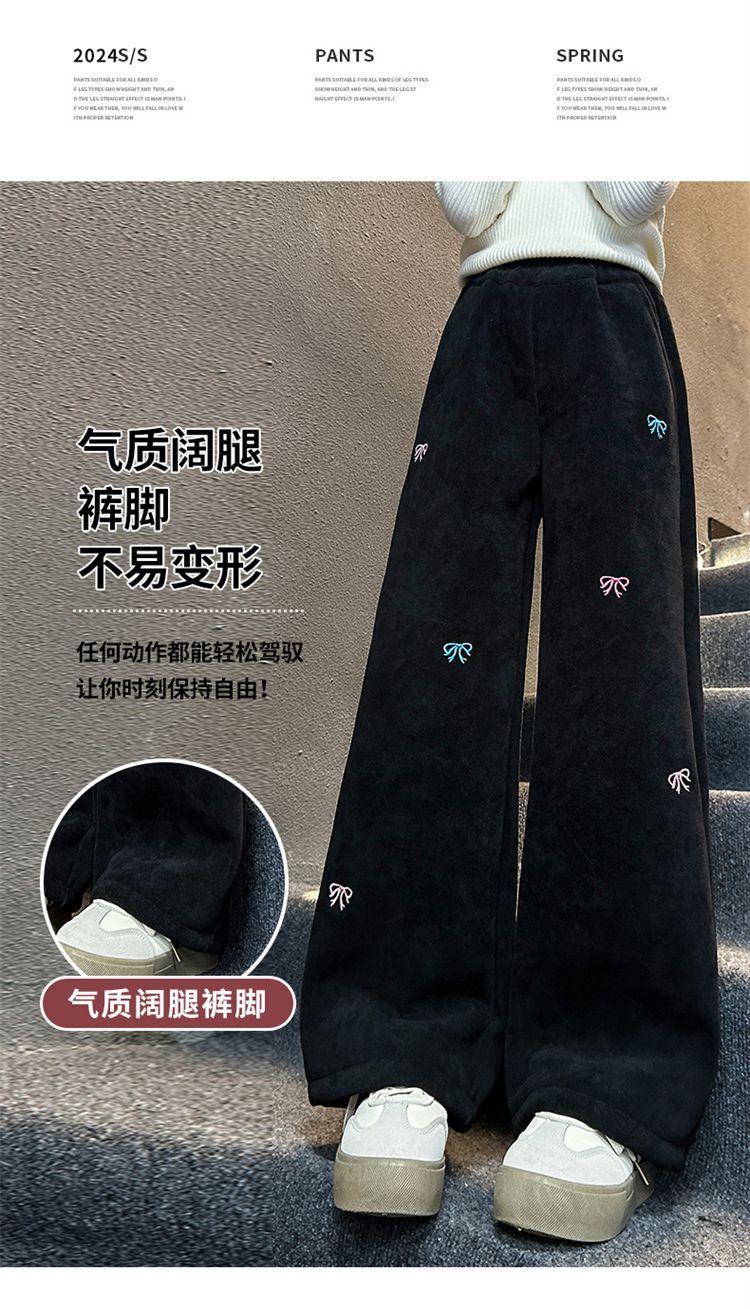 소녀 겨울 체닐 바지 2024 새로운 서양식 중첩 어린이 한국 스타일 소녀 가을 겨울 바지 어린이 넓은 다리 바지스토어 가기