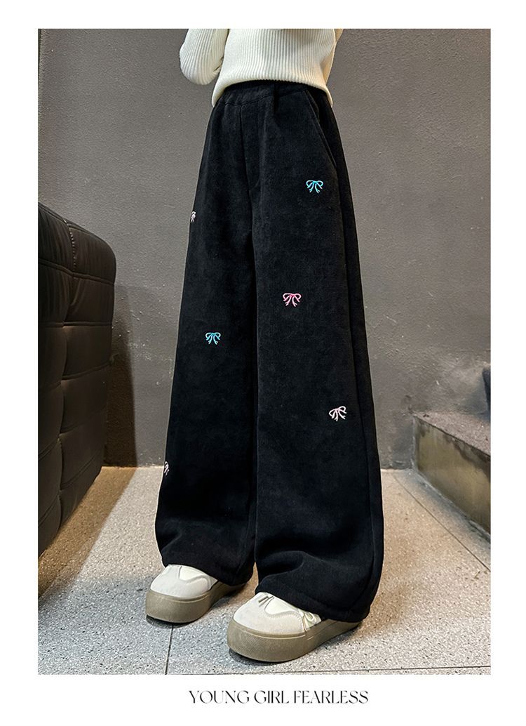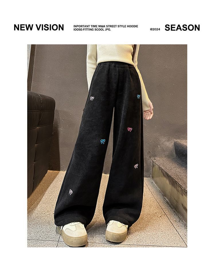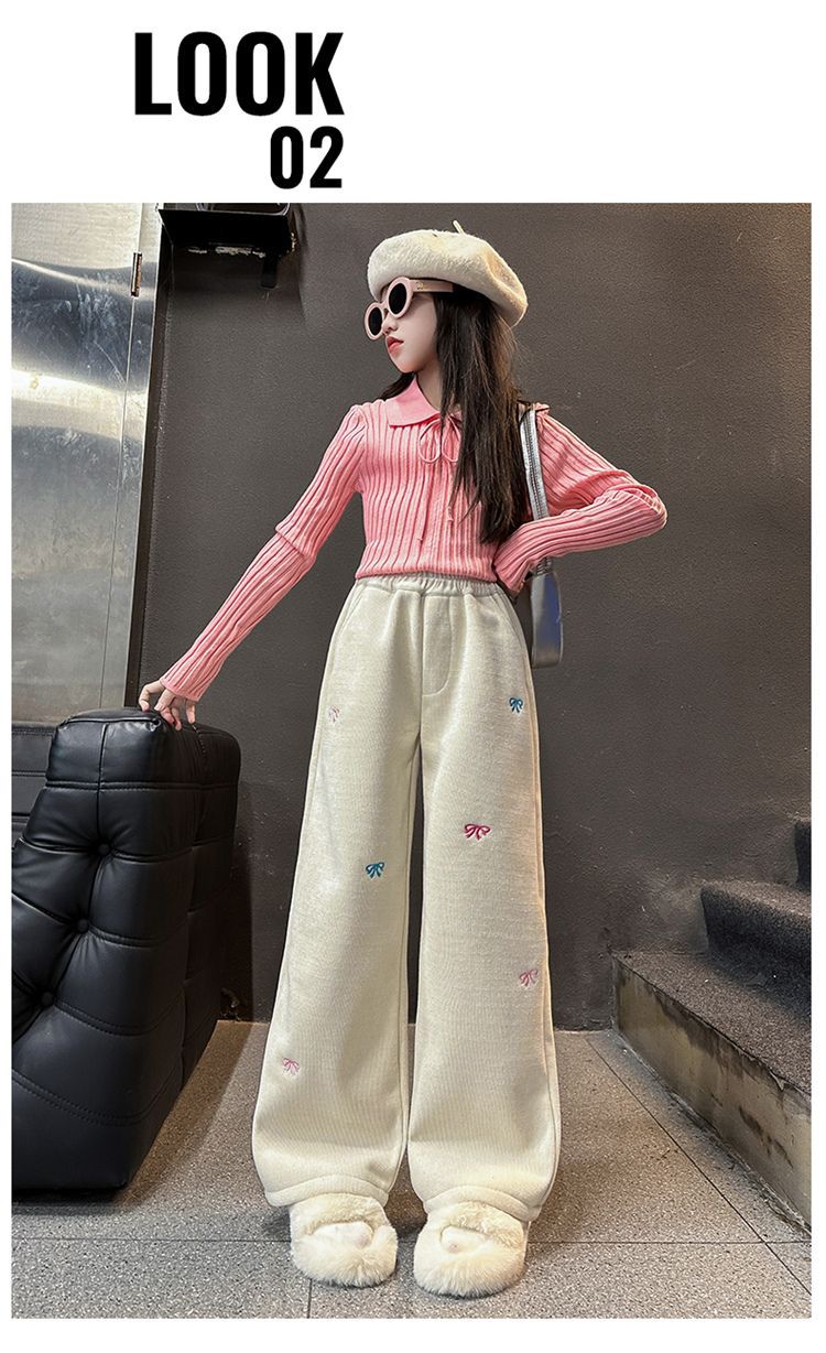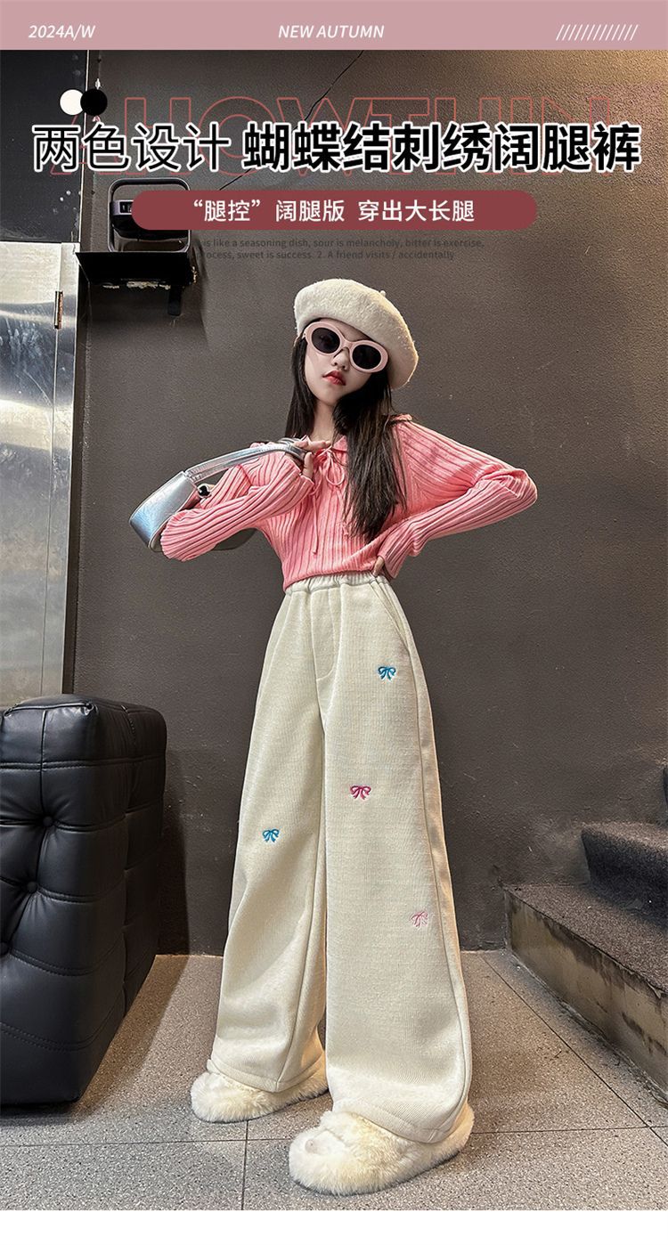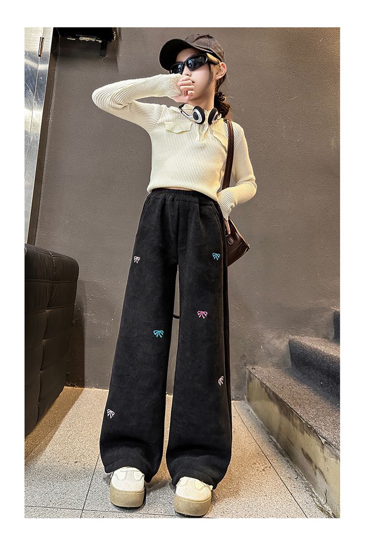 소녀 겨울 체닐 바지 2024 새로운 서양식 중첩 어린이 한국 스타일 소녀 가을 겨울 바지 어린이 넓은 다리 바지스토어 가기