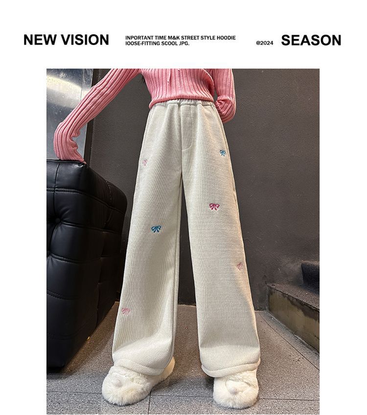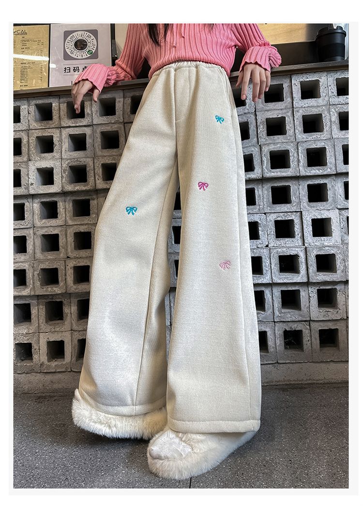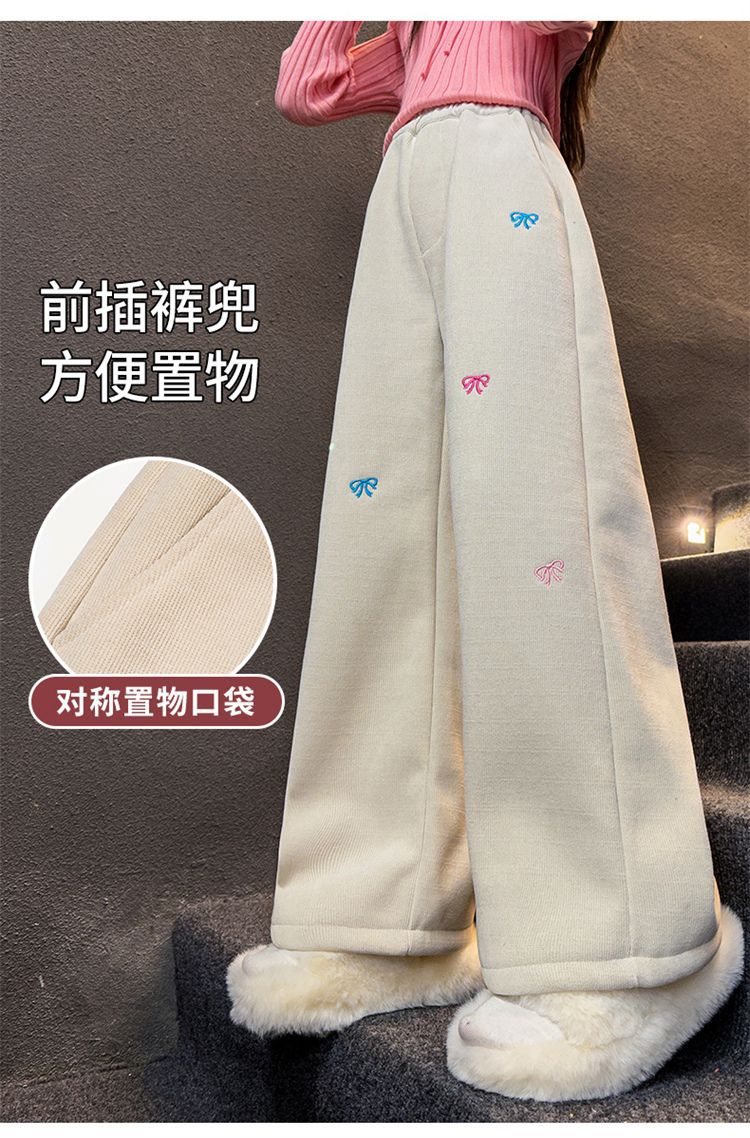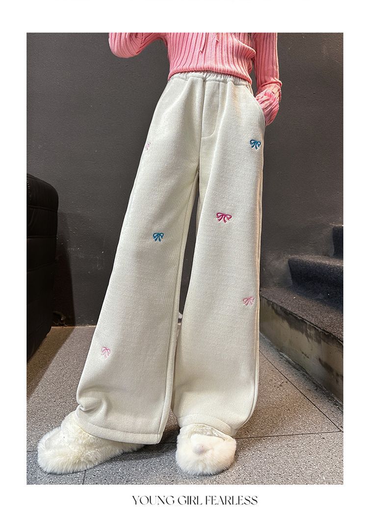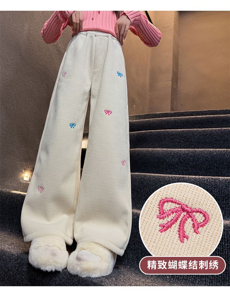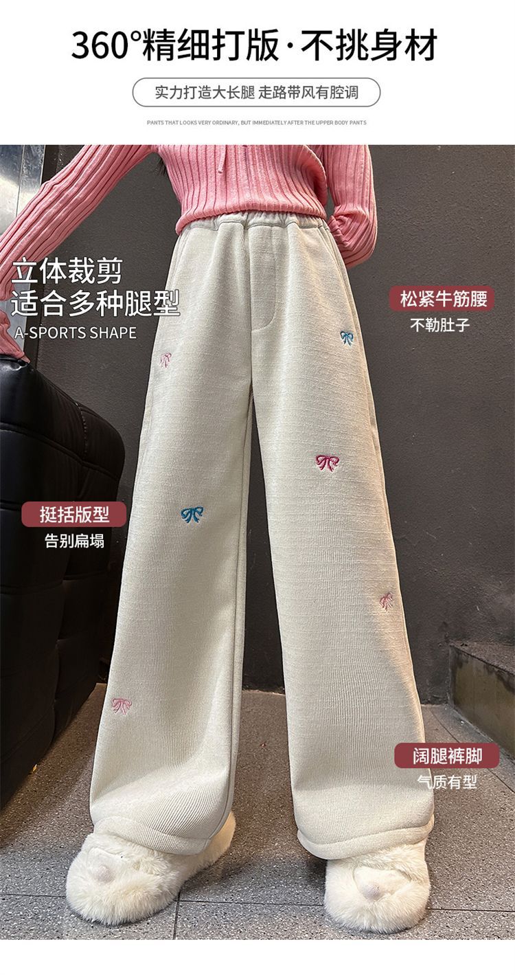 소녀 겨울 체닐 바지 2024 새로운 서양식 중첩 어린이 한국 스타일 소녀 가을 겨울 바지 어린이 넓은 다리 바지스토어 가기