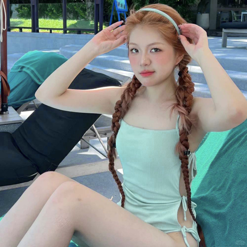 패션 새로운 솔리드 컬러 사이드 할로우 레이스 업 섹시한 어깨 순수한 욕망 스타일 원바디 트라이앵글 비키니 수영복