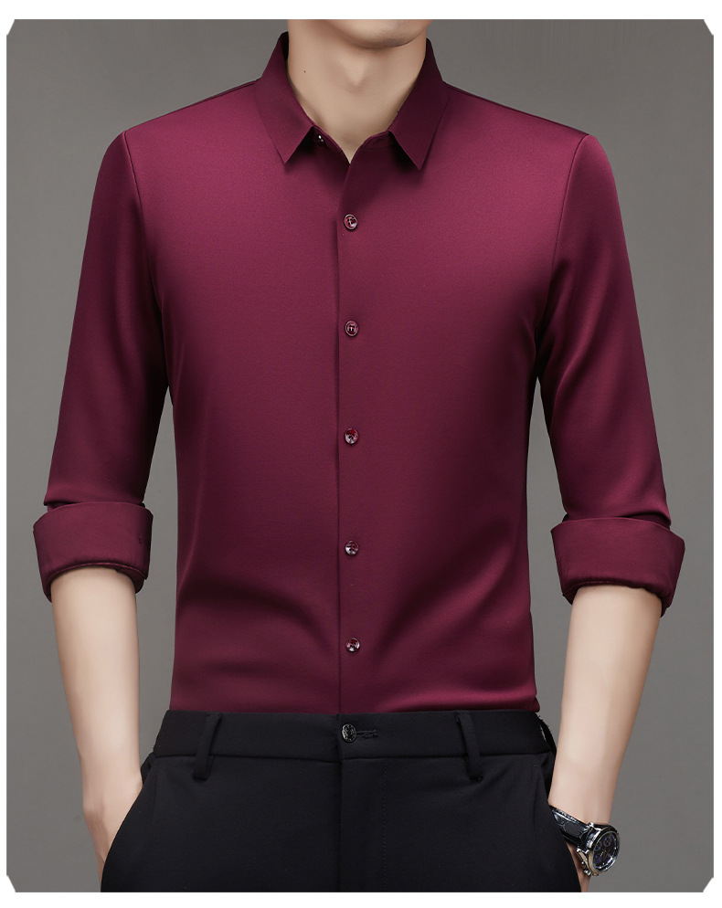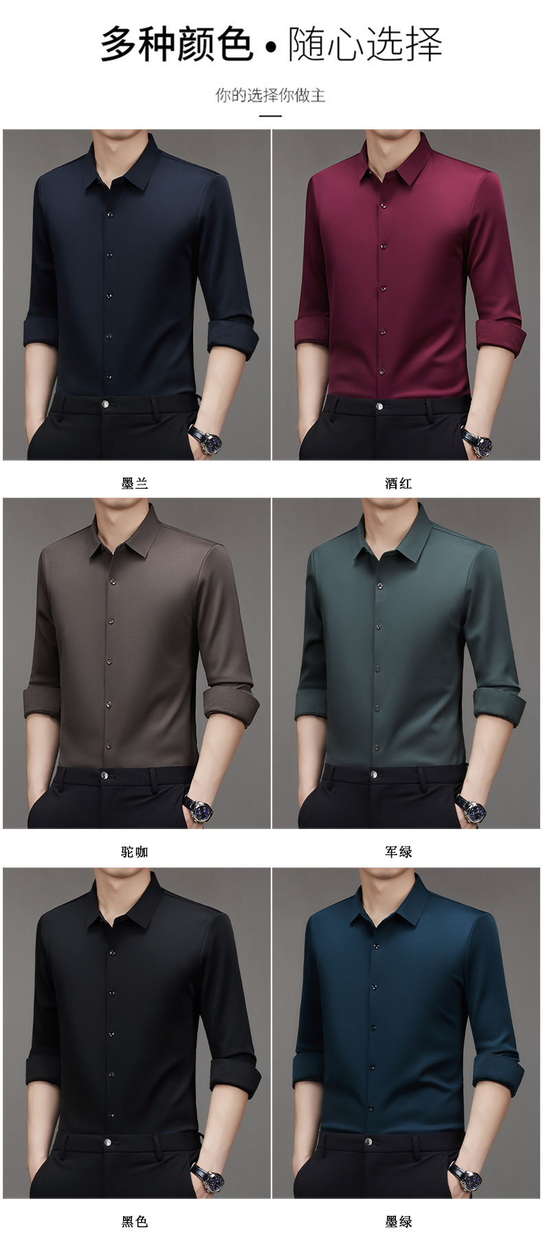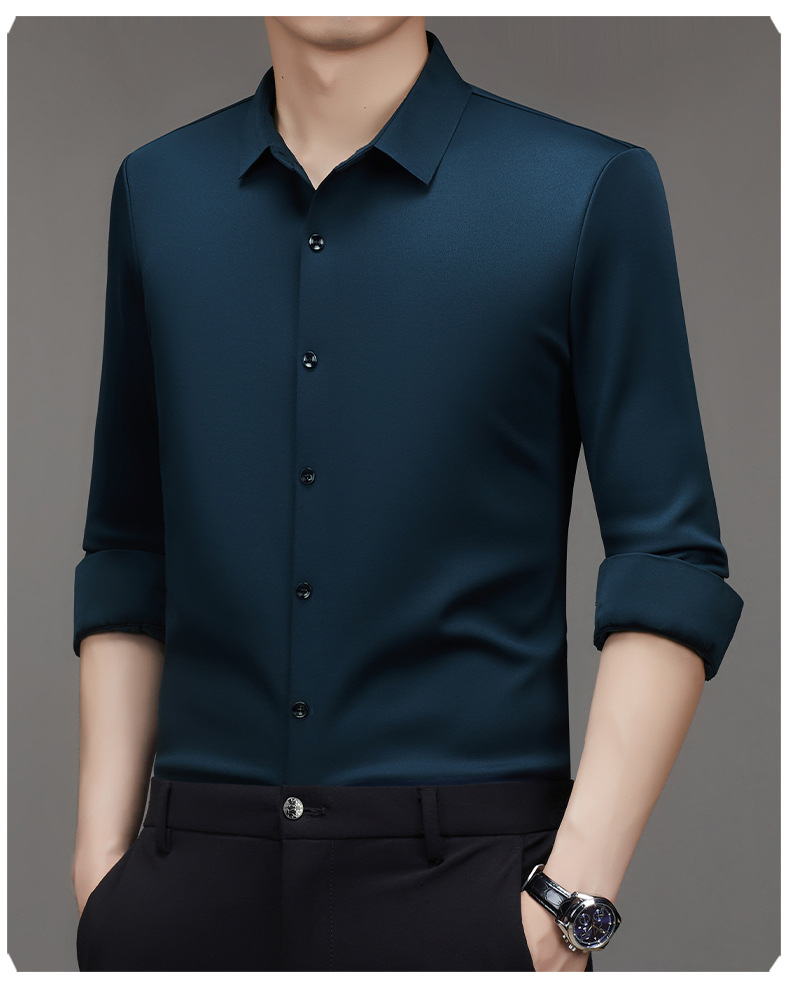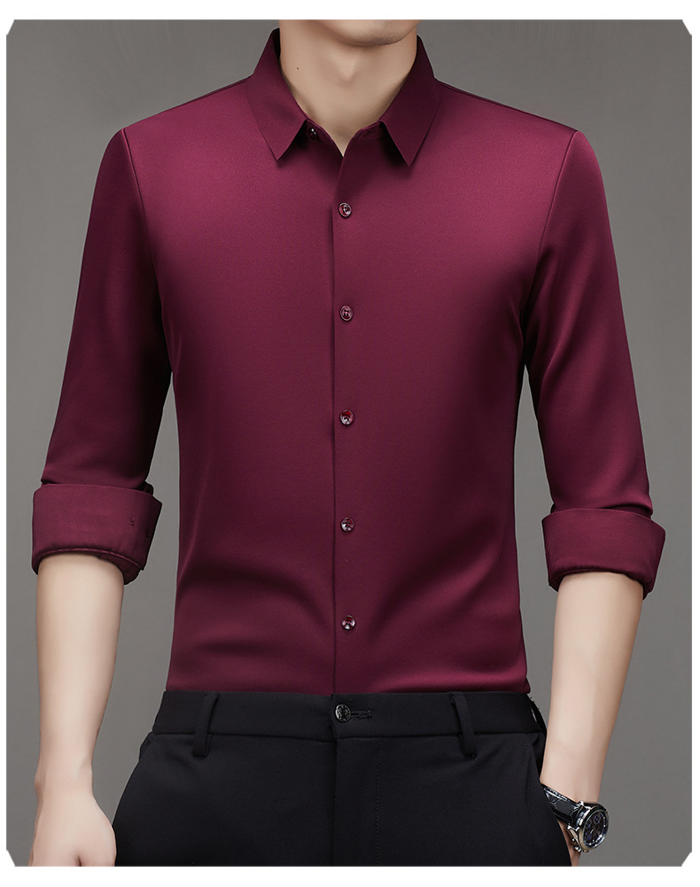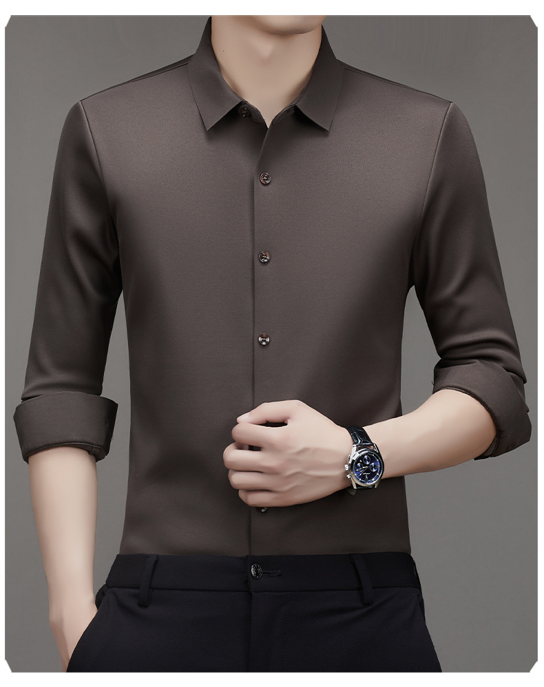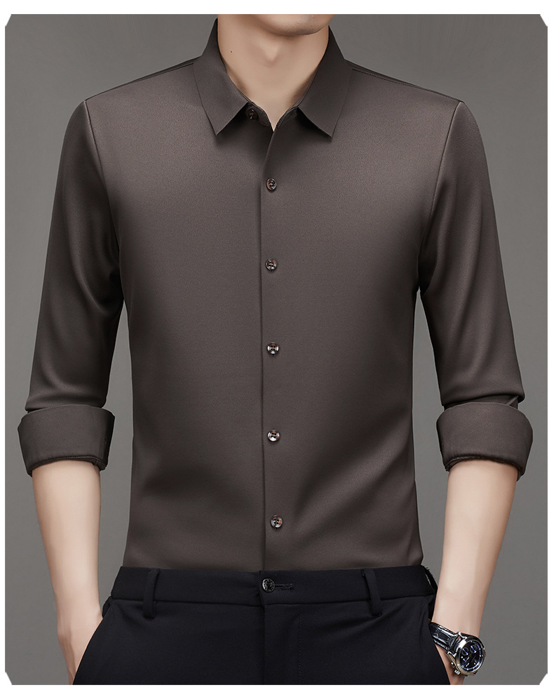최고급 가을과 겨울 쓰레기 셔츠 트레이드리스 셔츠 뽕나무 실크 긴팔 셔츠 다림질 비 다림질 탄성 기모 두꺼운 남성복
