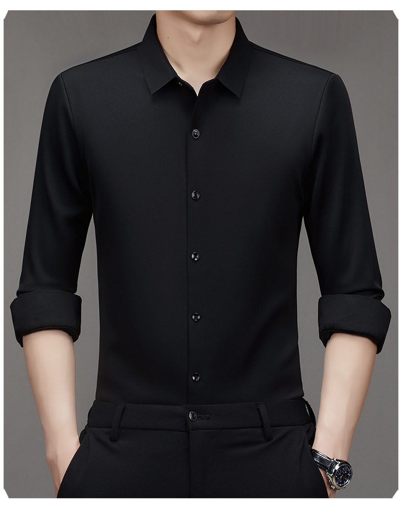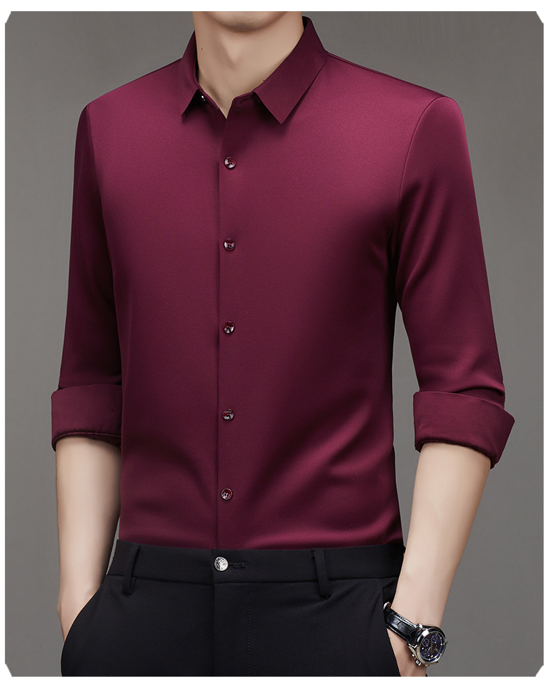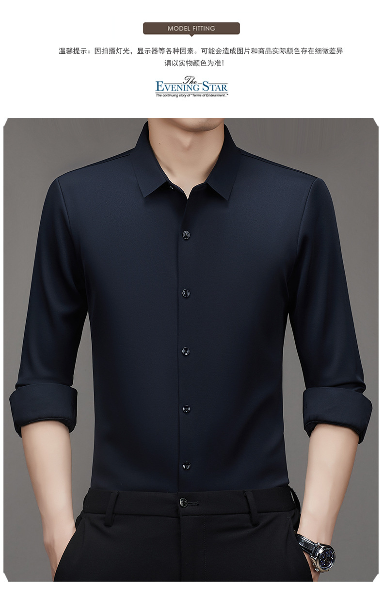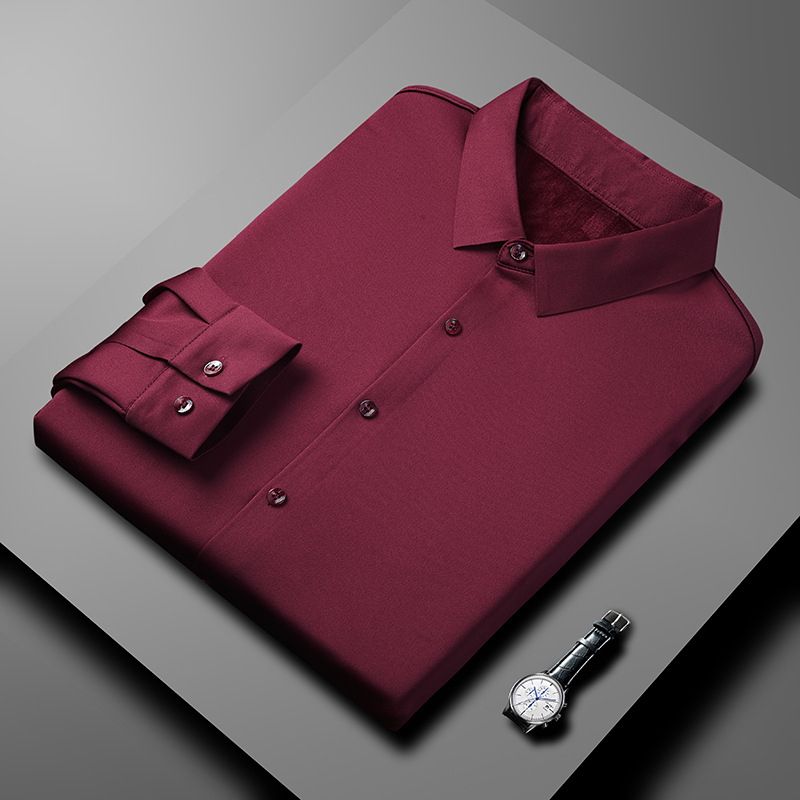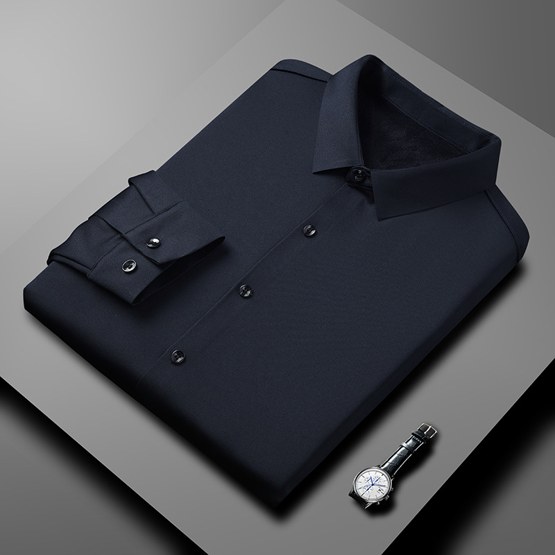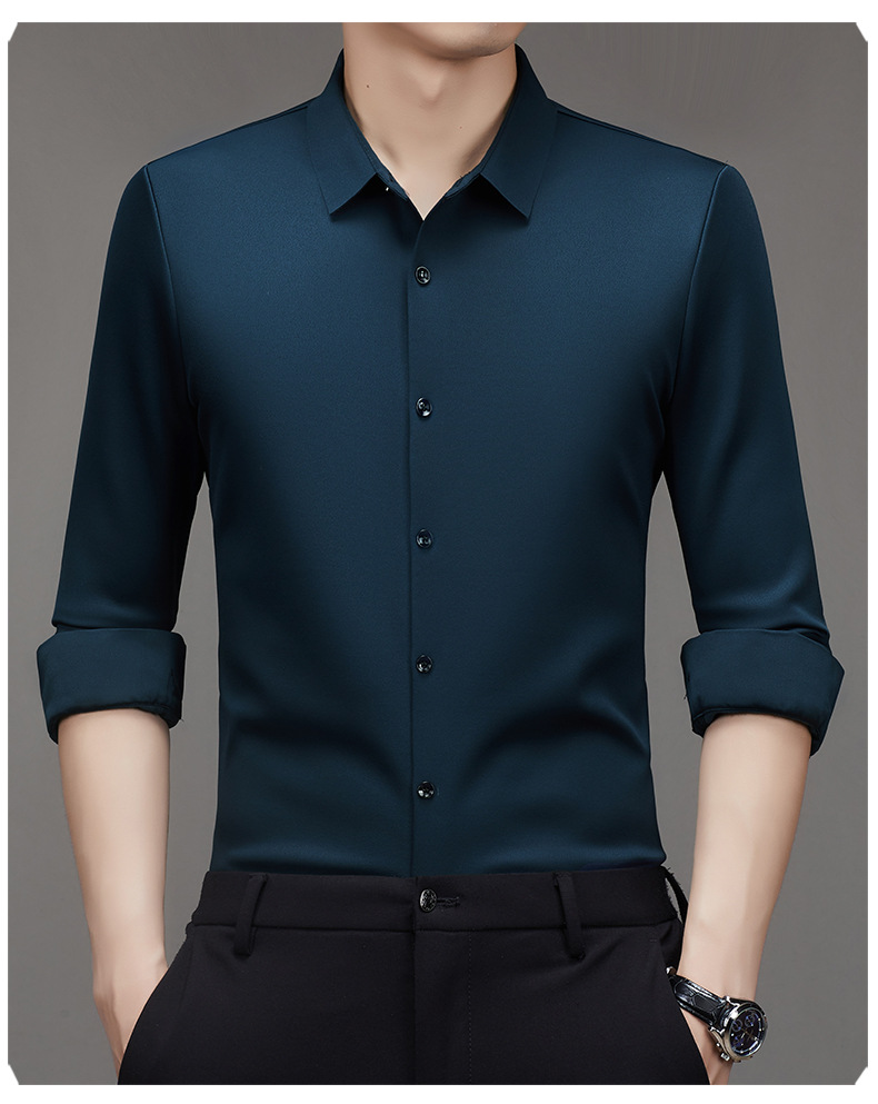 최고급 가을과 겨울 쓰레기 셔츠 트레이드리스 셔츠 뽕나무 실크 긴팔 셔츠 다림질 비 다림질 탄성 기모 두꺼운 남성복