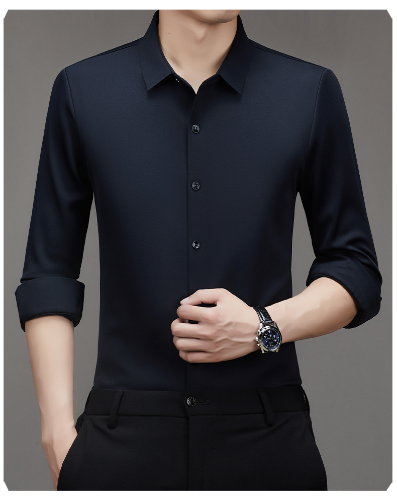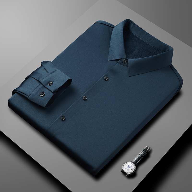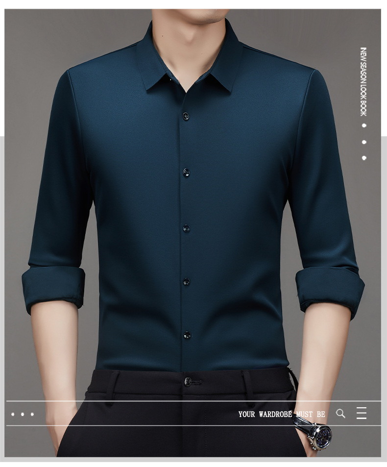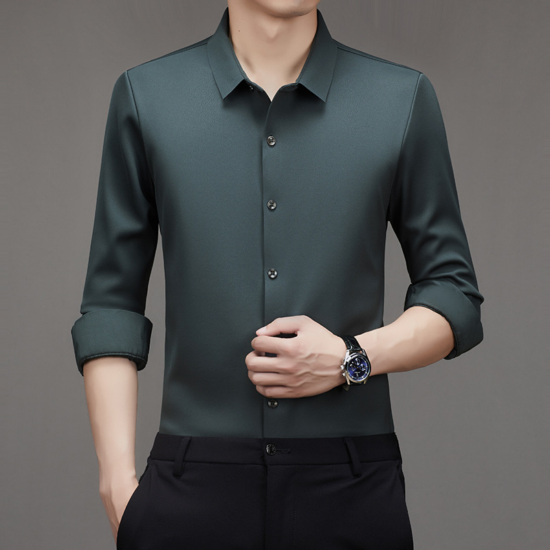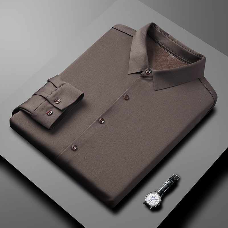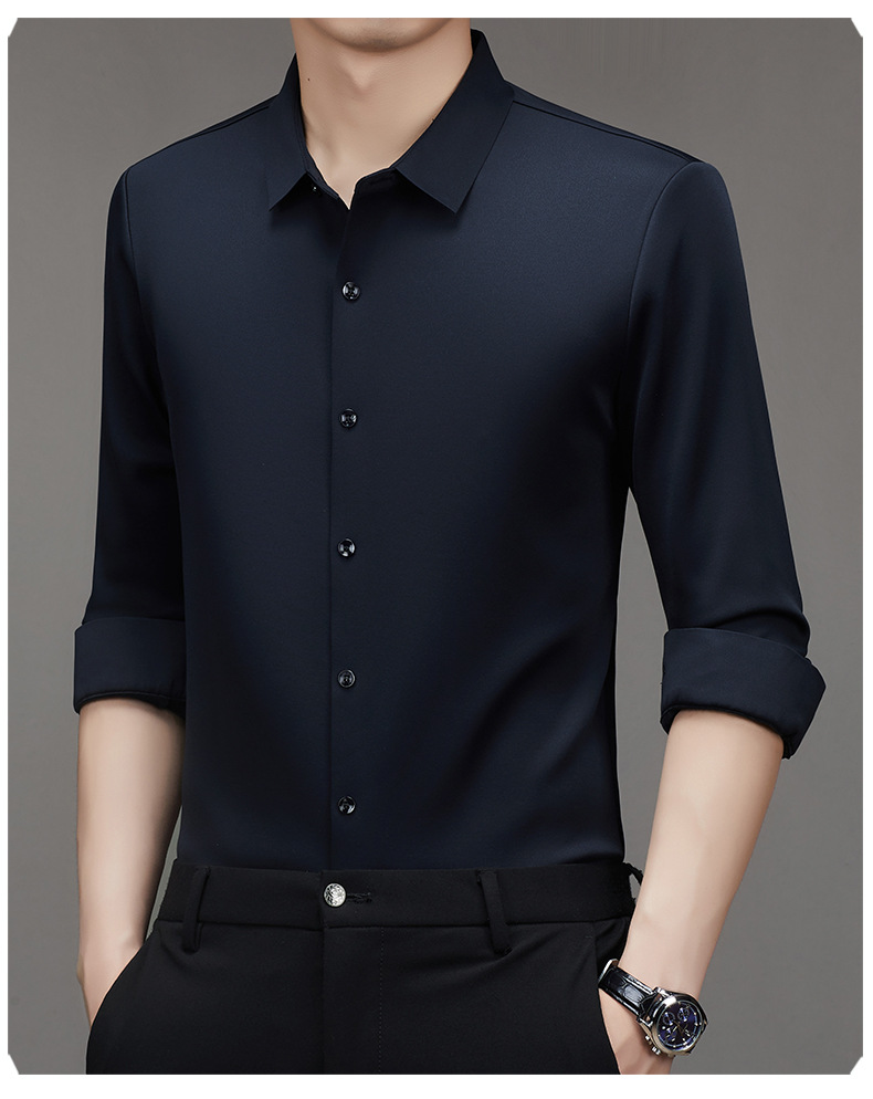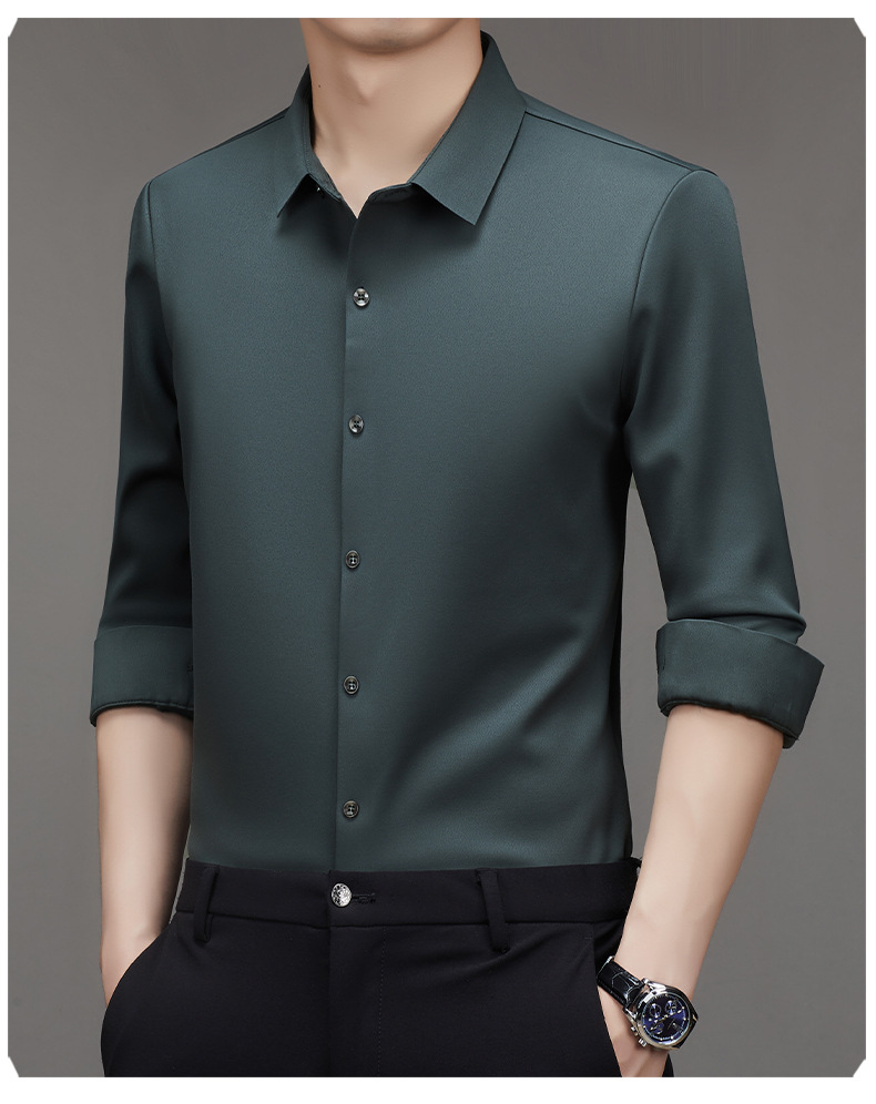 최고급 가을과 겨울 쓰레기 셔츠 트레이드리스 셔츠 뽕나무 실크 긴팔 셔츠 다림질 비 다림질 탄성 기모 두꺼운 남성복