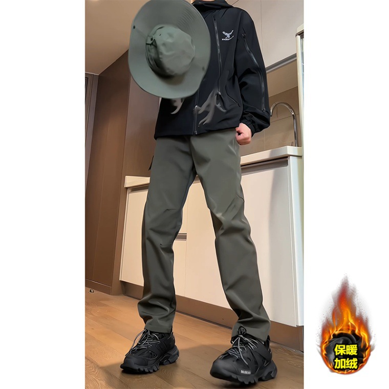 기모 방수 충전 바지 남자의 겨울 두꺼운 야외 하이킹 등반 바지 미국 스타일 하이 스트리트 기능성 바이브 바지스토어 가기