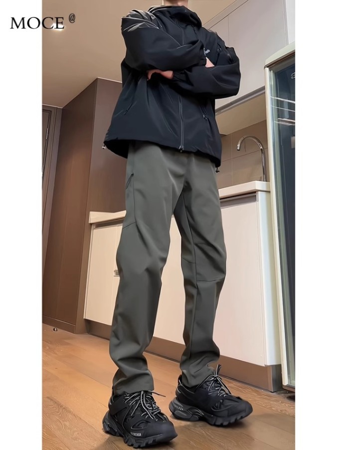 기모 방수 충전 바지 남자의 겨울 두꺼운 야외 하이킹 등반 바지 미국 스타일 하이 스트리트 기능성 바이브 바지
