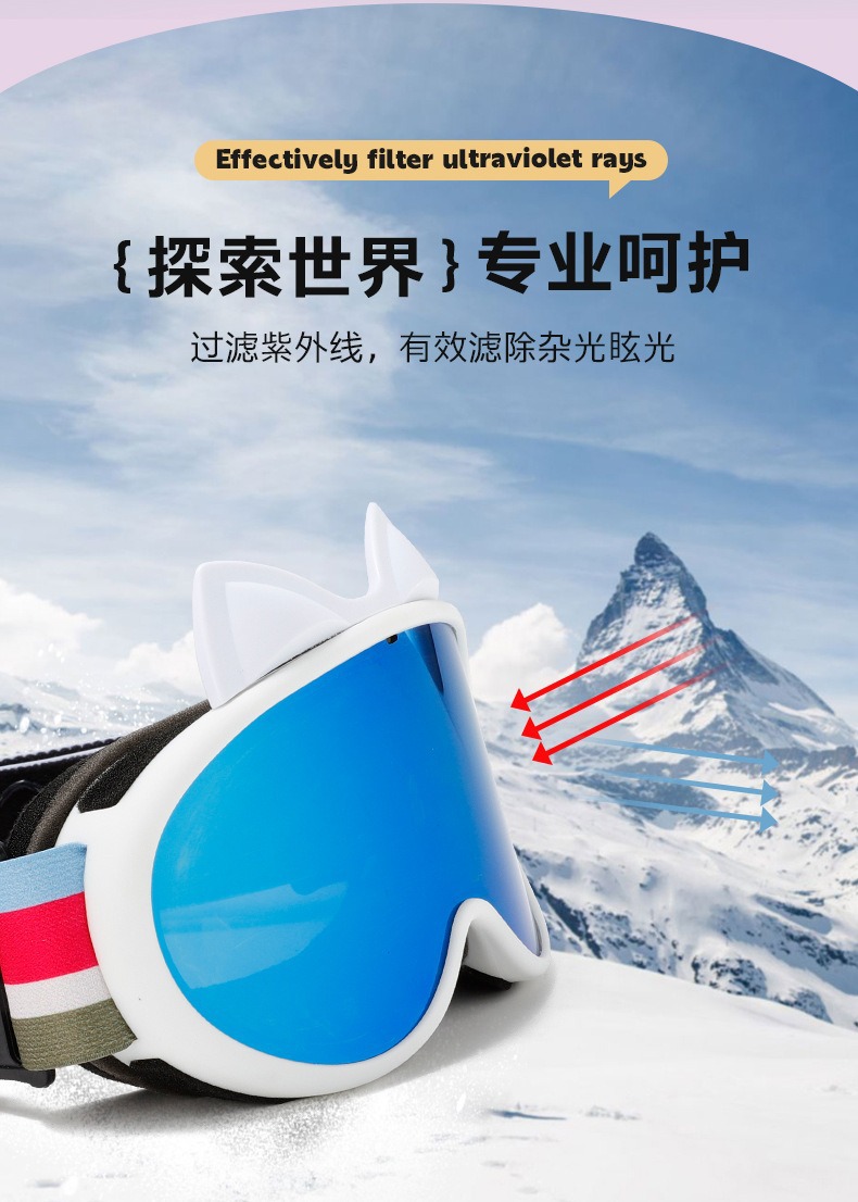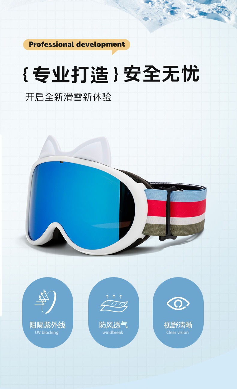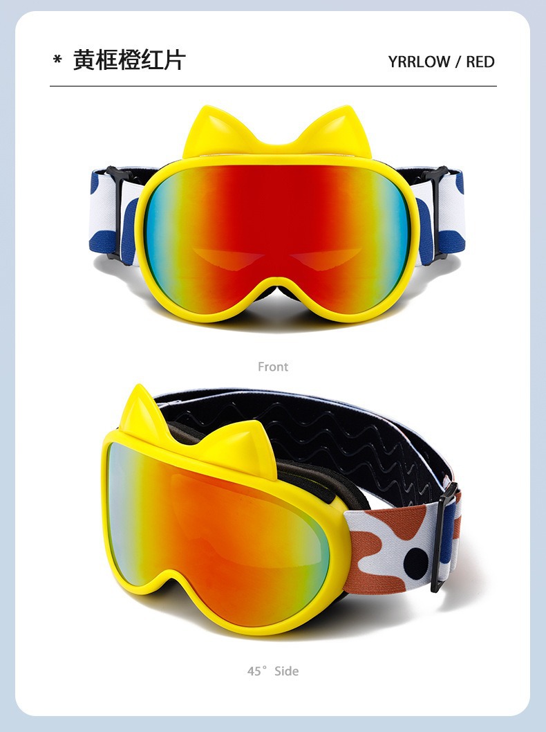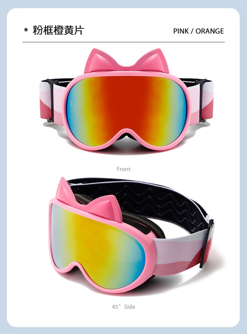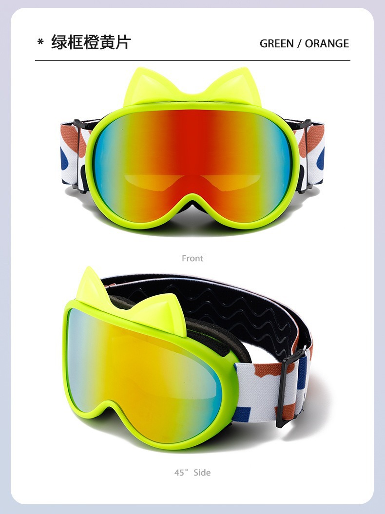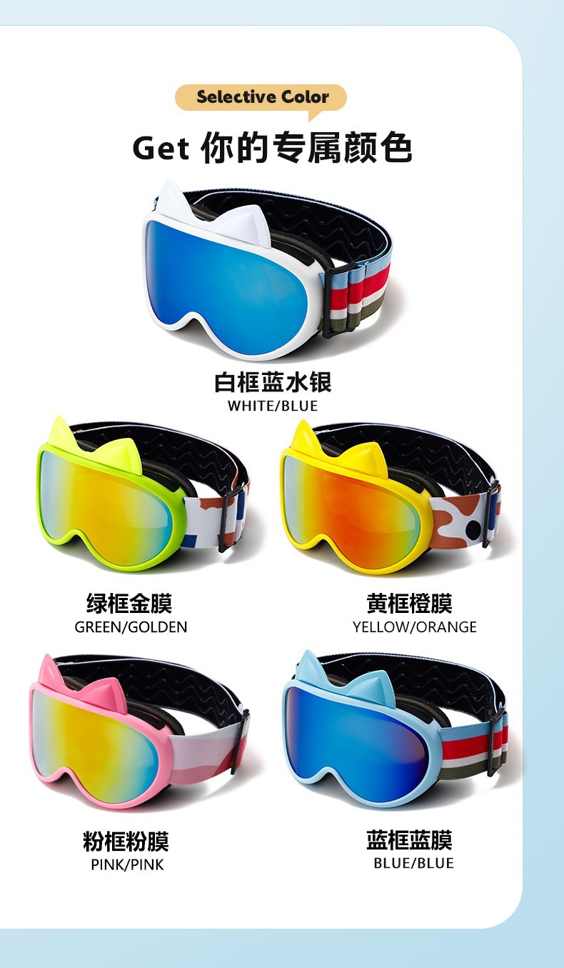 새로운 다채로운 귀여운 고양이 귀 이중 층 안개 방지 어린이 스키 고글 야외 방풍 눈 보호 산 스키 안경스토어 가기
