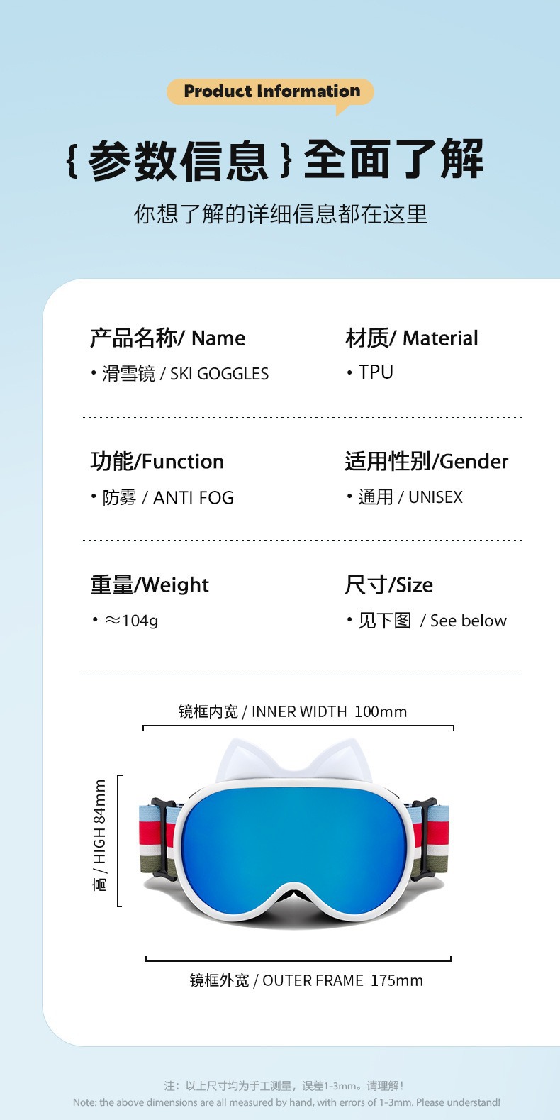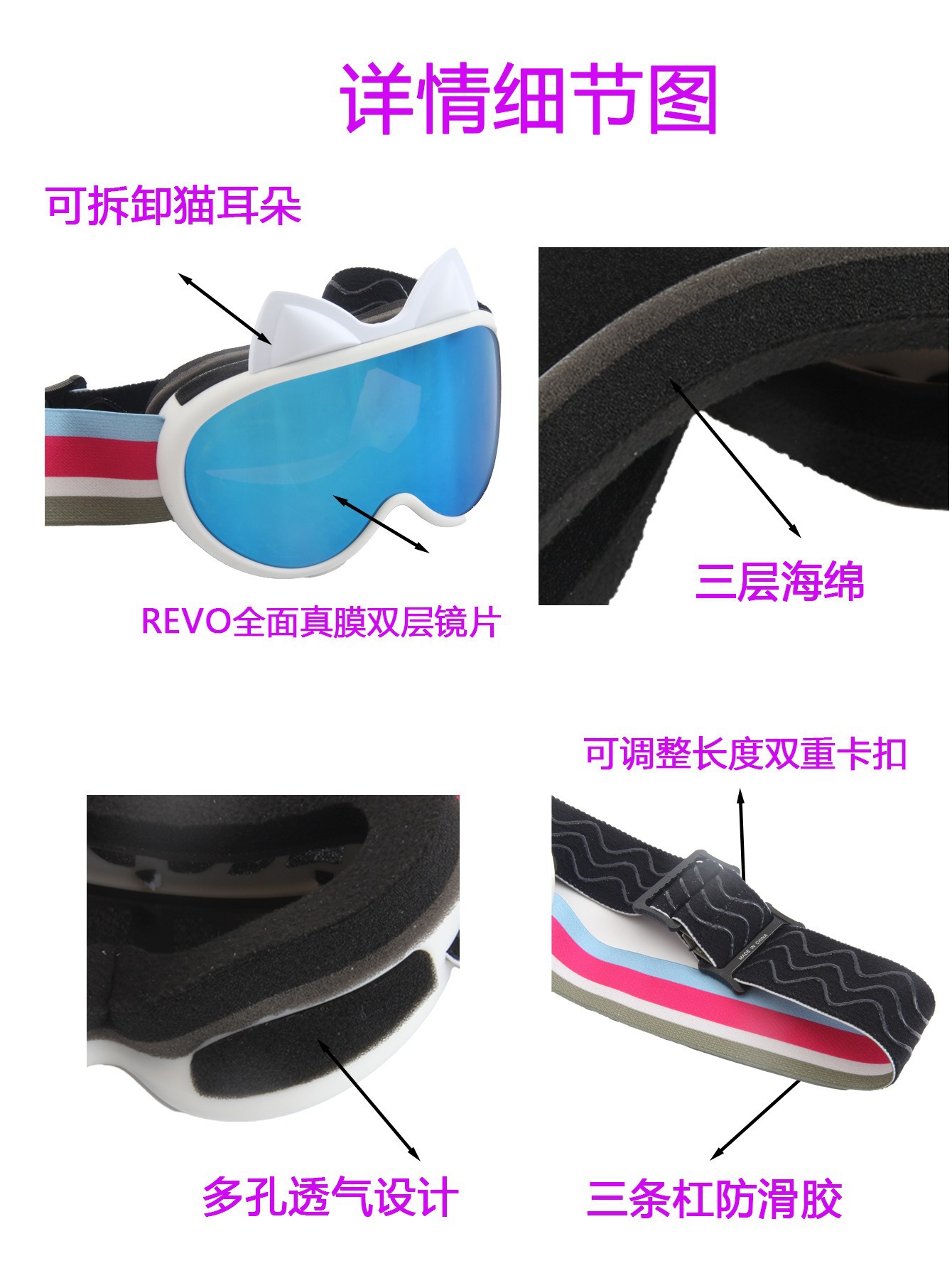 새로운 다채로운 귀여운 고양이 귀 이중 층 안개 방지 어린이 스키 고글 야외 방풍 눈 보호 산 스키 안경