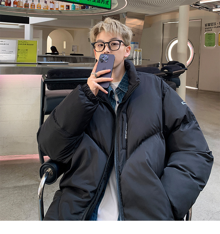 남성용 코튼 패딩 코트 겨울 패셔너블 루즈 수직 칼라 코튼 패딩 코트 두꺼운 코튼 코트 아메리칸 스타일 빈티지 브레드 코트 코트스토어 가기