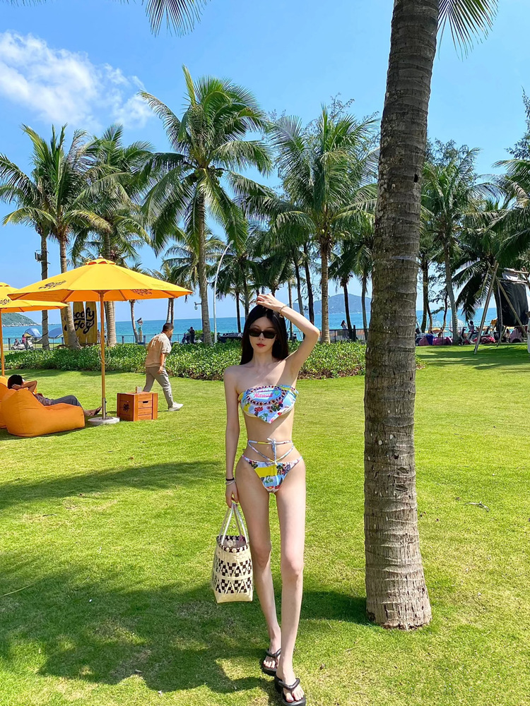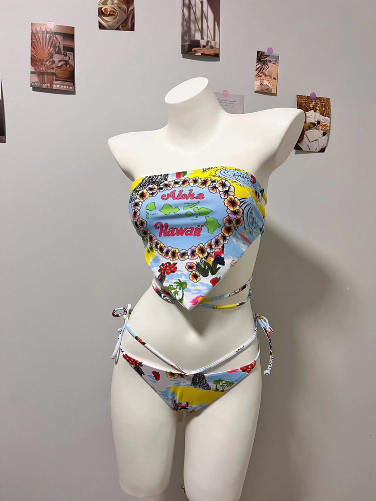 태국 스타일 슈퍼 매운 순수 스트랩리스 스트랩 섹시 백리스 3 점 스플릿 비키니 휴일 사진 수영복