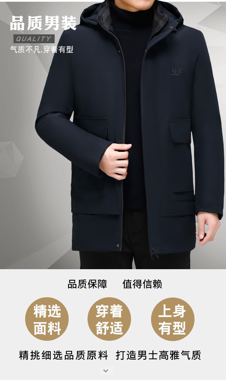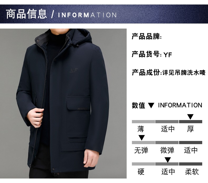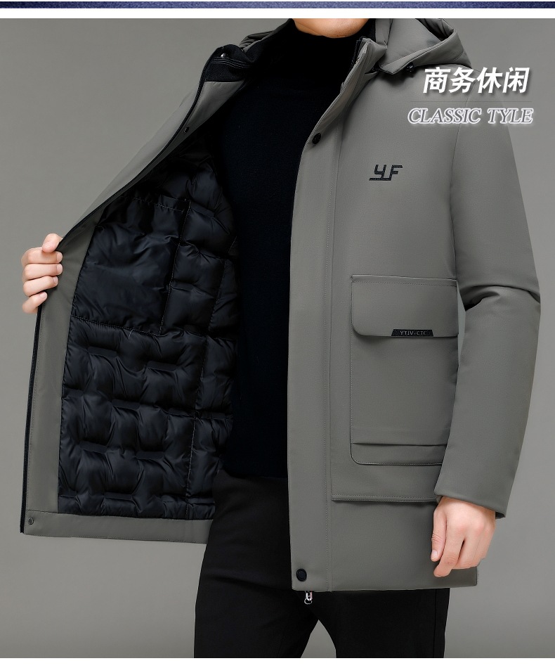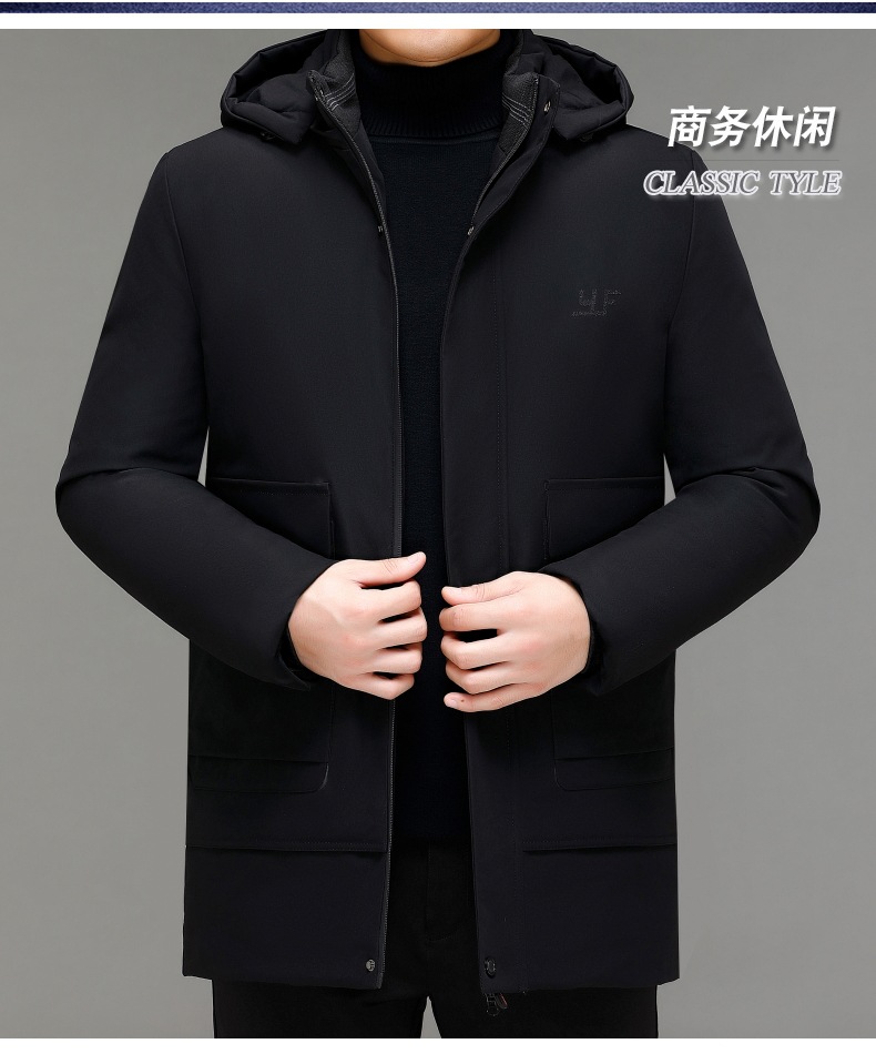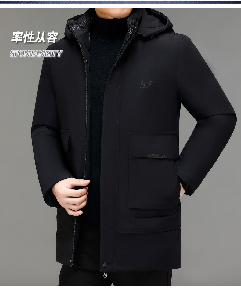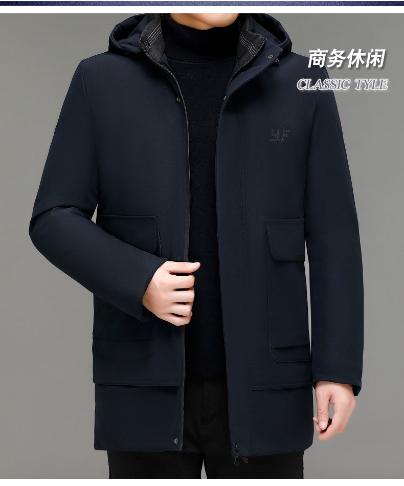 중년 및 노인 아버지를위한 고급 면화 패딩 재킷 남성용 따뜻한 후드 중간 길이 2024 가을 및 겨울면 패딩 재킷 플러스 사이즈 코트 남성스토어 가기
