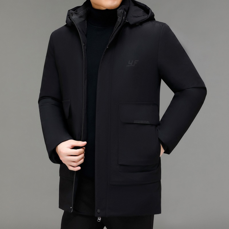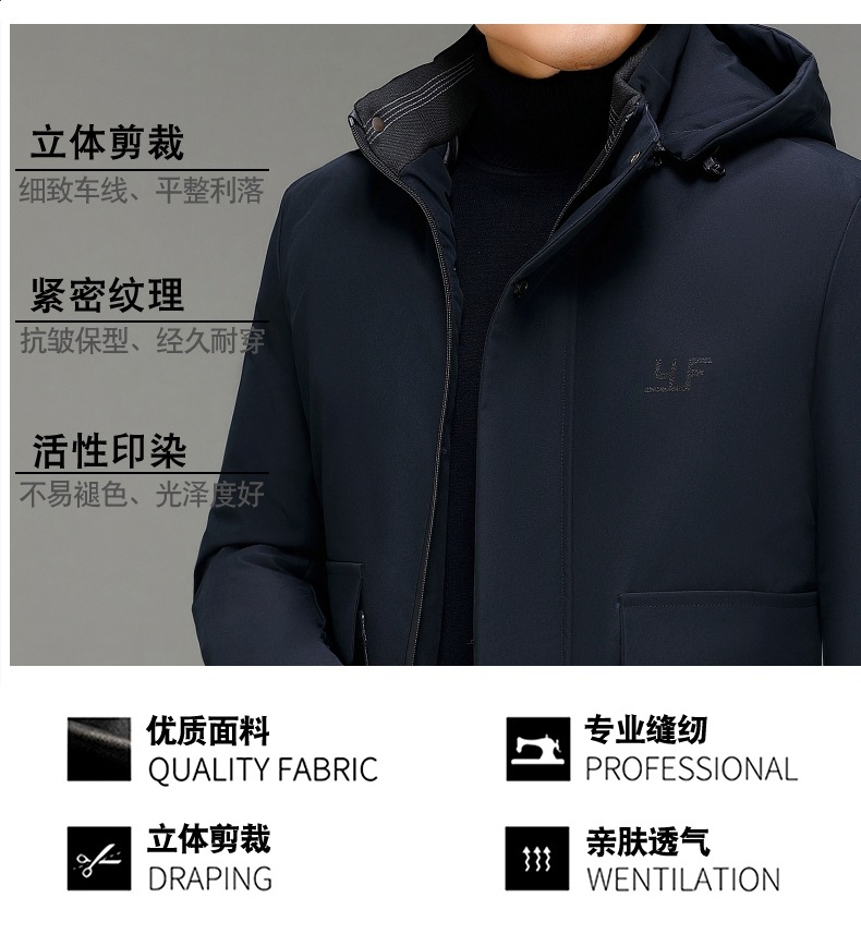 중년 및 노인 아버지를위한 고급 면화 패딩 재킷 남성용 따뜻한 후드 중간 길이 2024 가을 및 겨울면 패딩 재킷 플러스 사이즈 코트 남성
