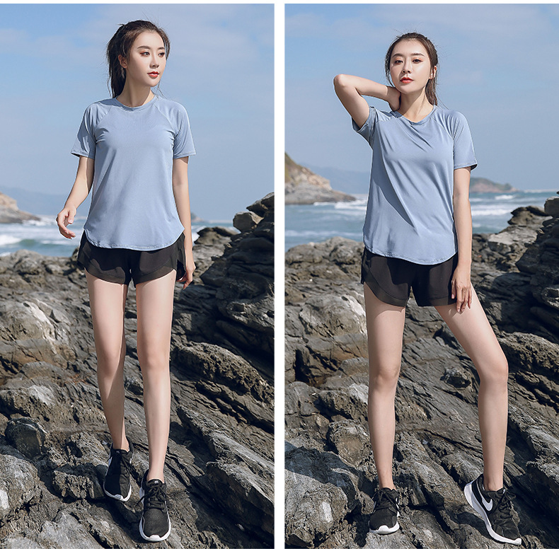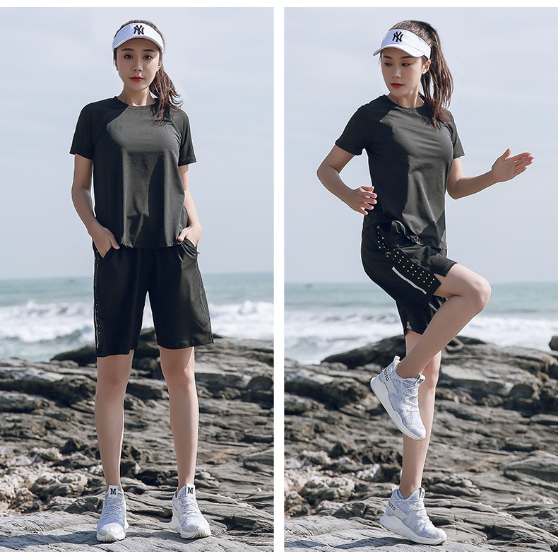 플러스 사이즈 피트니스 세트 여성 여름 루즈 반바지 200 진 달리기 빠른 건조 옷 통통녀 아침 달리기 운동복 요가 옷스토어 가기