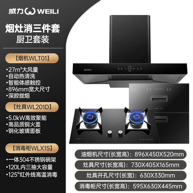 전력 범위 후드 가스 스토브 세트 T01 이중 캐비티 가정용 주방 가스 스토브 소독 캐비닛 연기 스토브 소독 3 피스 세트스토어 가기