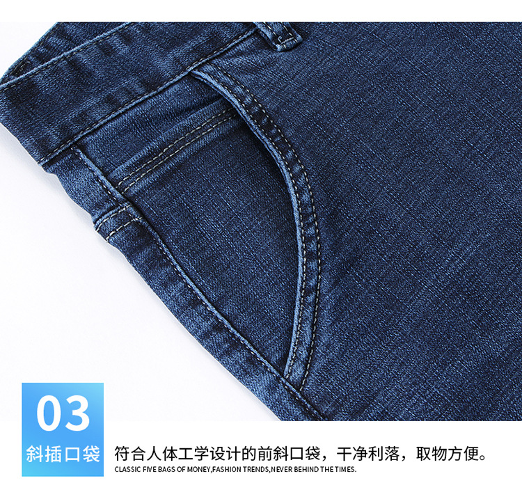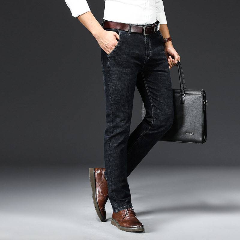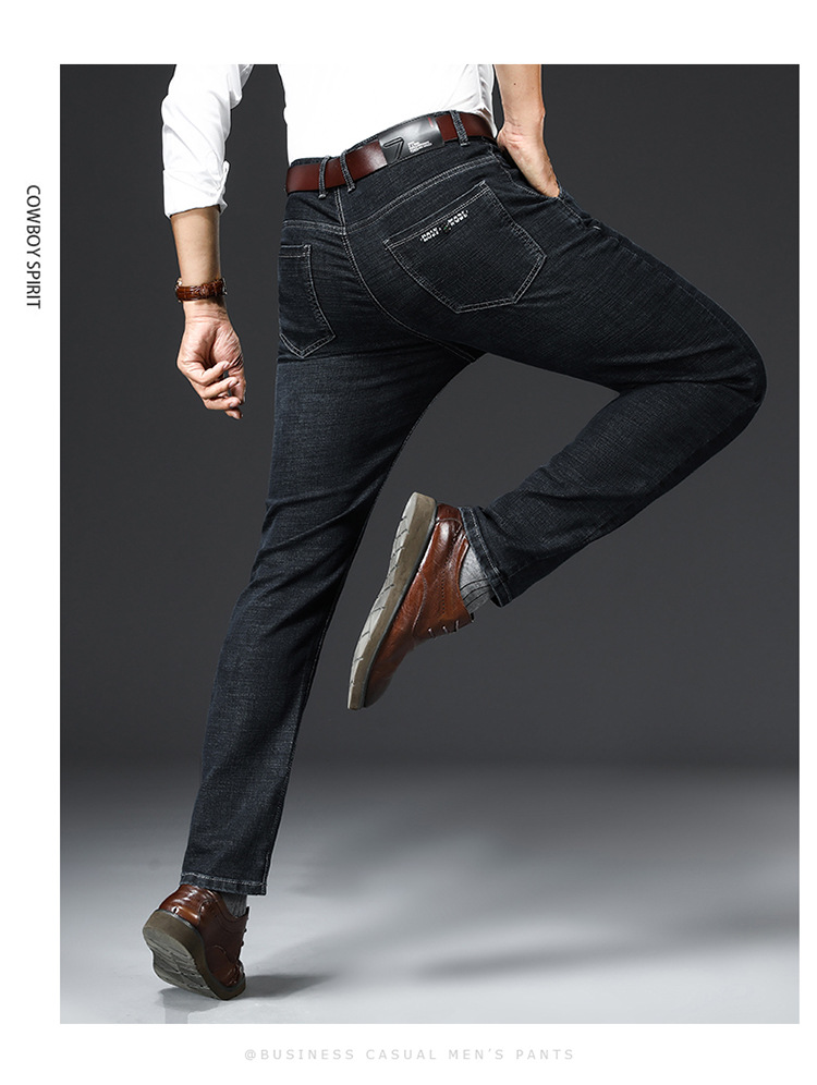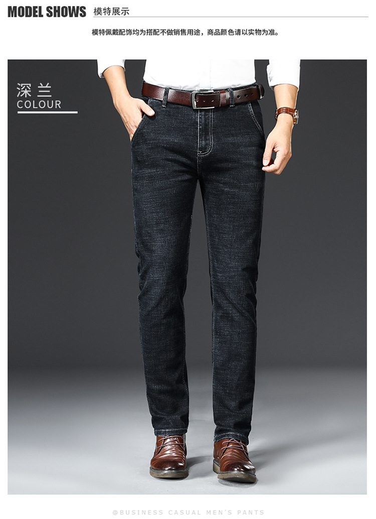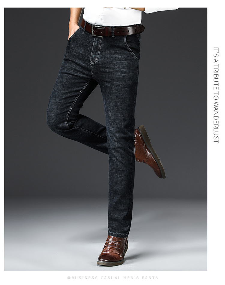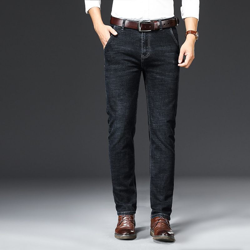 2024 겨울 뉴 기모 남성용 청바지 중간 허리 스트레이트 중년 비즈니스 캐주얼 바지 남성용 바지스토어 가기