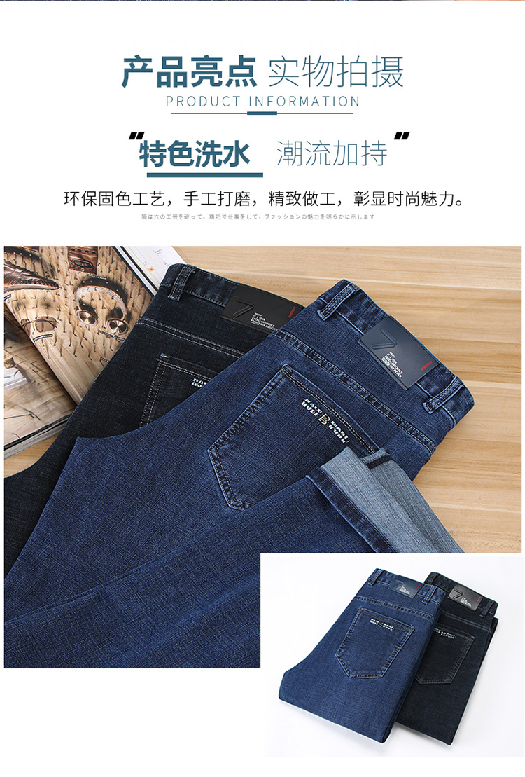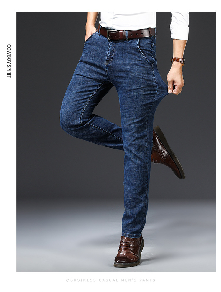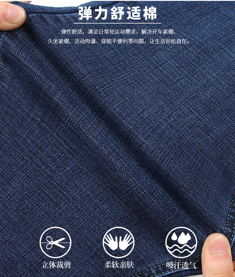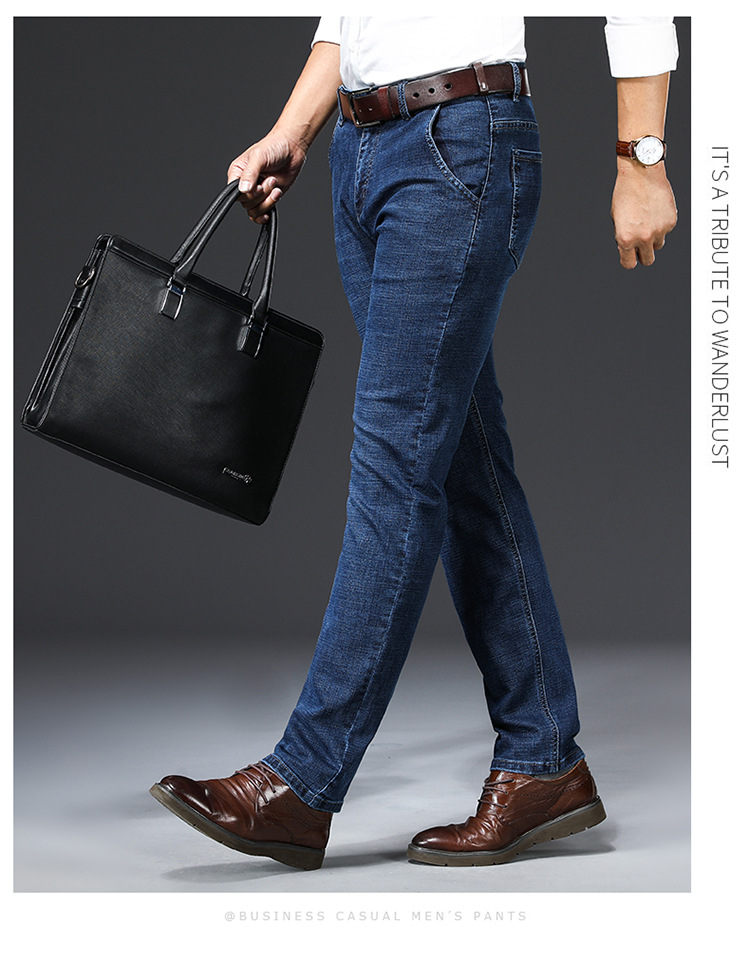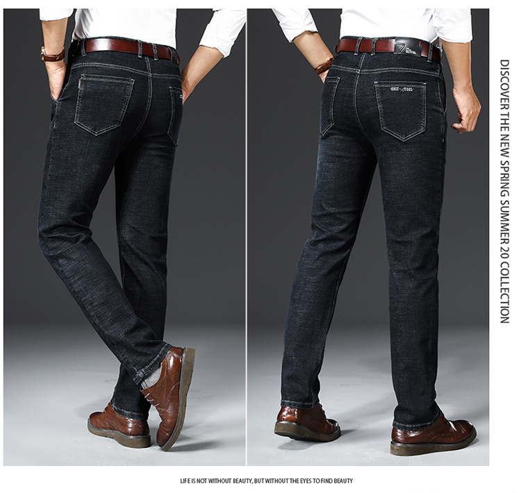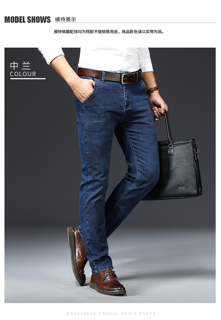 2024 겨울 뉴 기모 남성용 청바지 중간 허리 스트레이트 중년 비즈니스 캐주얼 바지 남성용 바지스토어 가기
