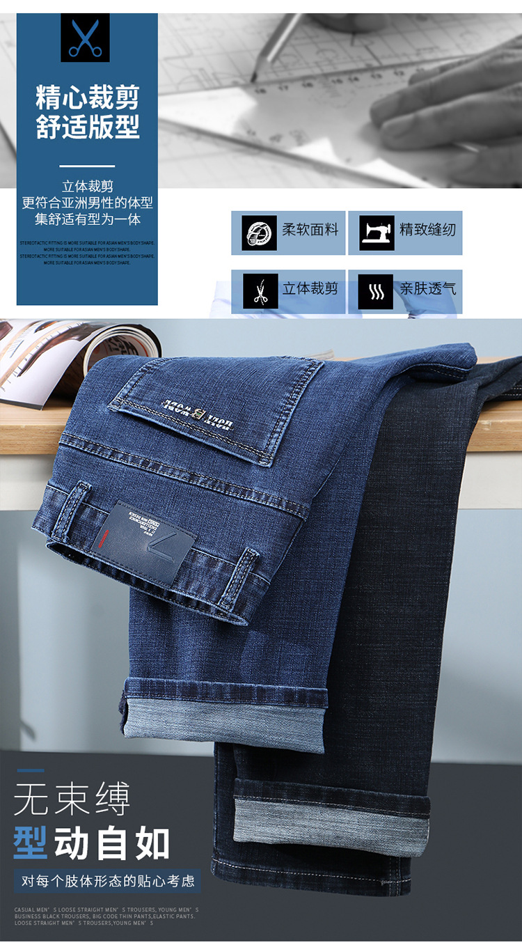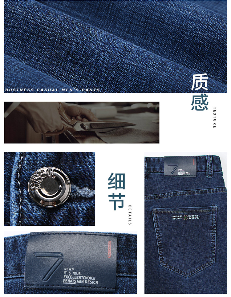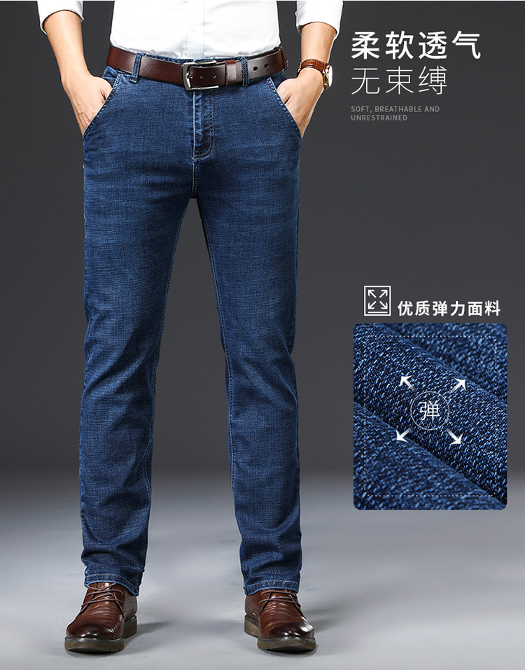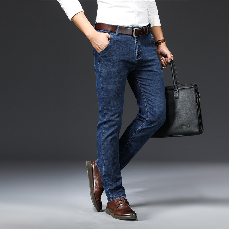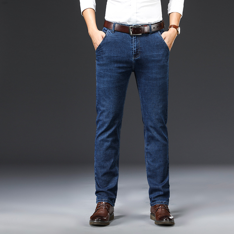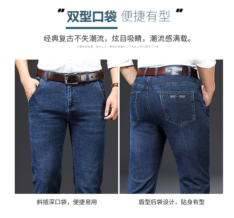 2024 겨울 뉴 기모 남성용 청바지 중간 허리 스트레이트 중년 비즈니스 캐주얼 바지 남성용 바지스토어 가기