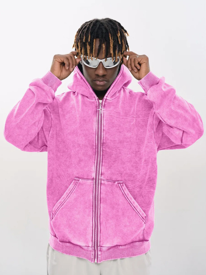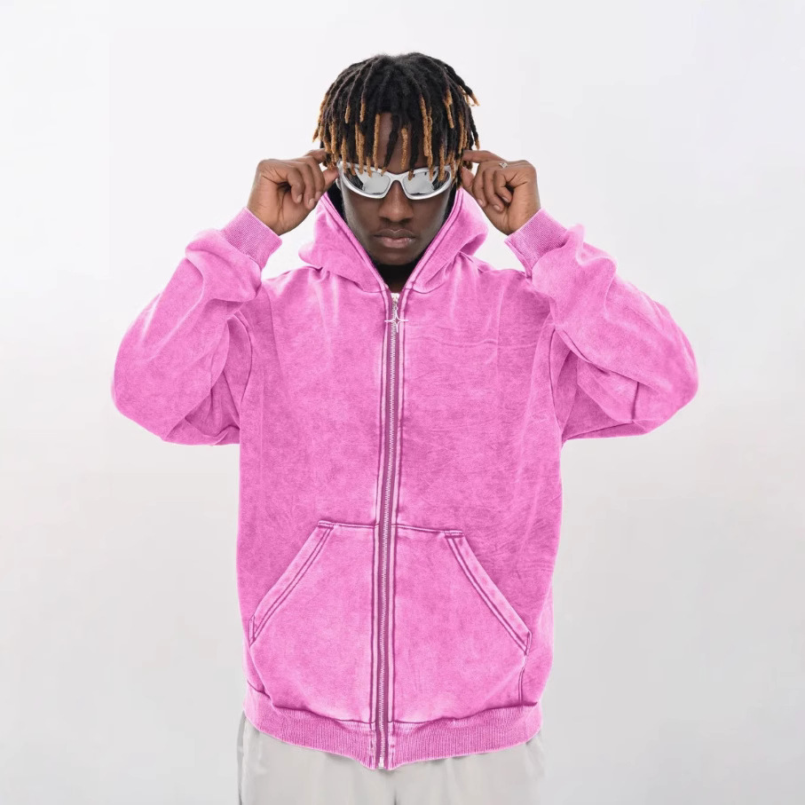 2024 가을/겨울 기모 씻은 오래된 후드 지퍼 땀 남자 복고풍 두꺼운 유행 브랜드 느슨한 커플 재킷