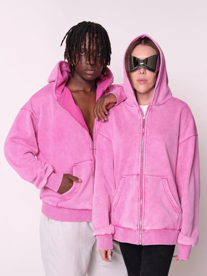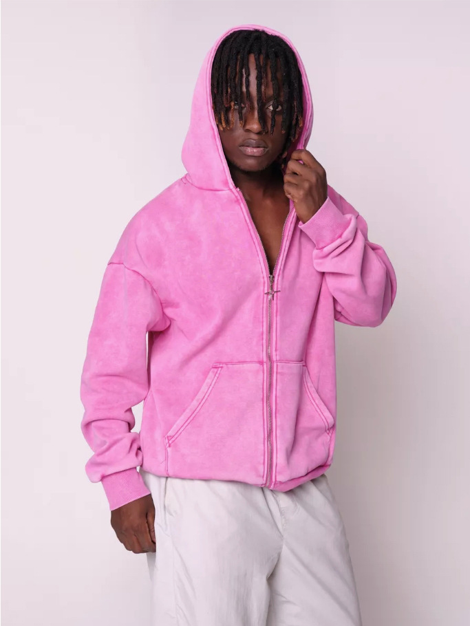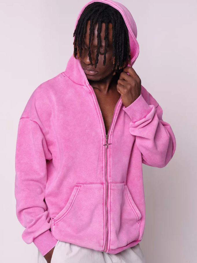 2024 가을/겨울 기모 씻은 오래된 후드 지퍼 땀 남자 복고풍 두꺼운 유행 브랜드 느슨한 커플 재킷스토어 가기