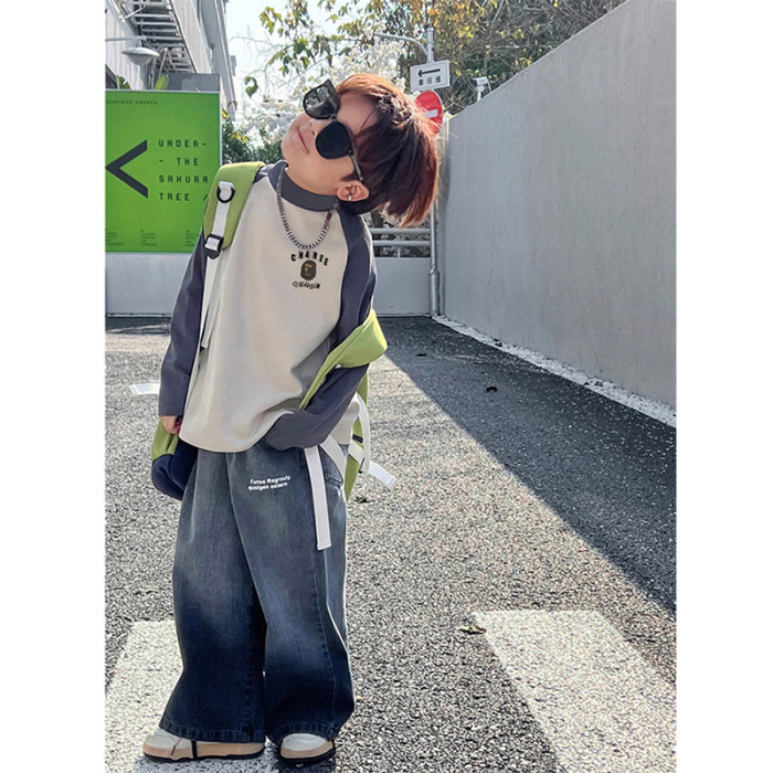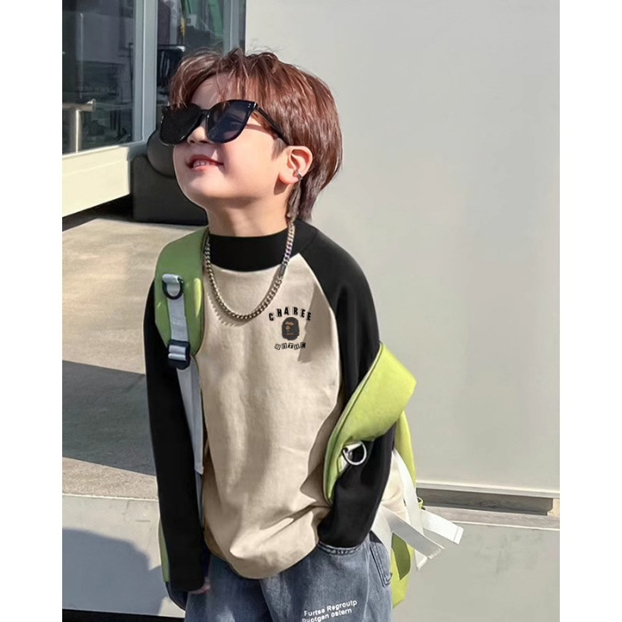 남학생의 반 높이 칼라베이스 셔츠 가을과 겨울 어린이 겨울 따뜻한 탑 빅 보이 미들 칼라 벨벳 이너 탑스토어 가기