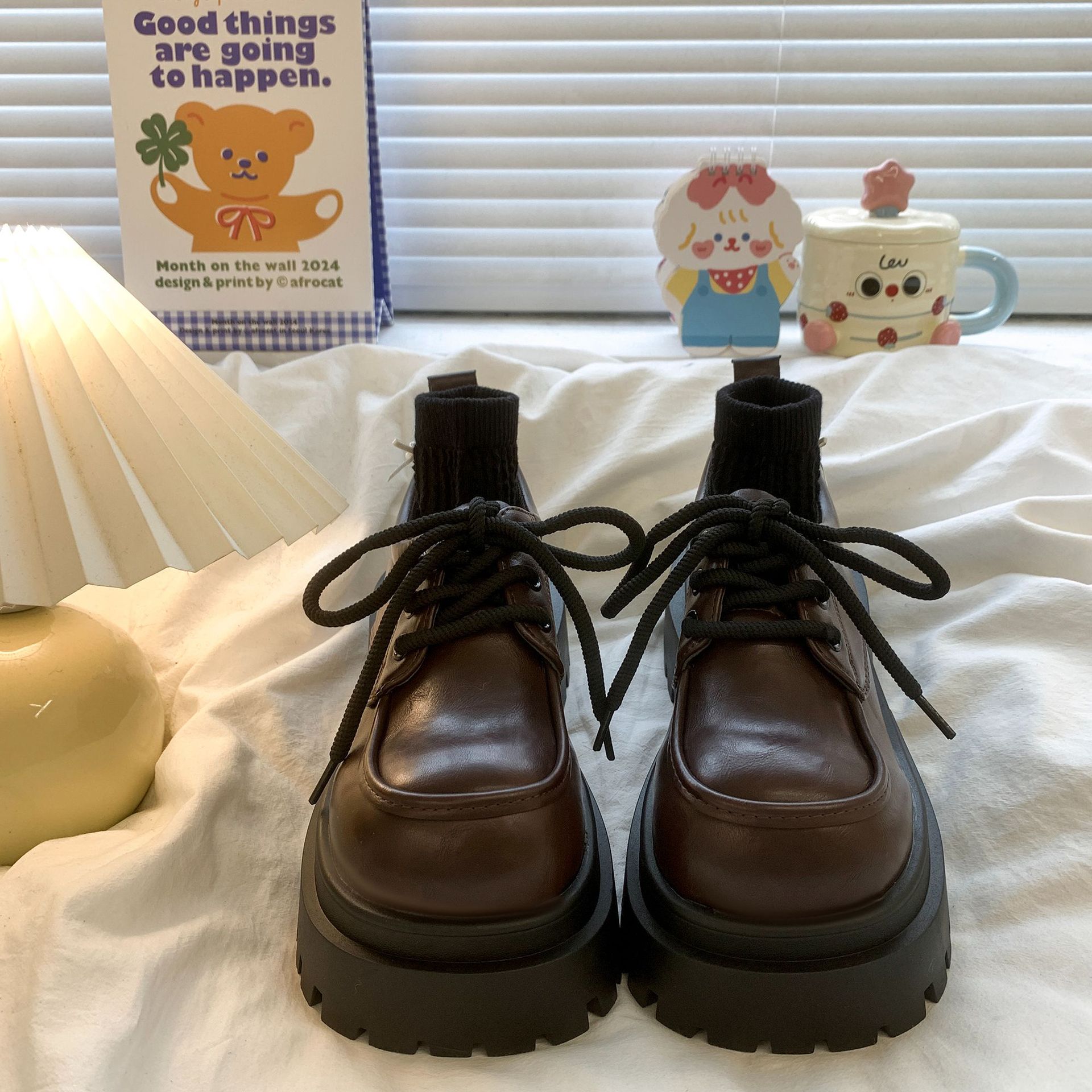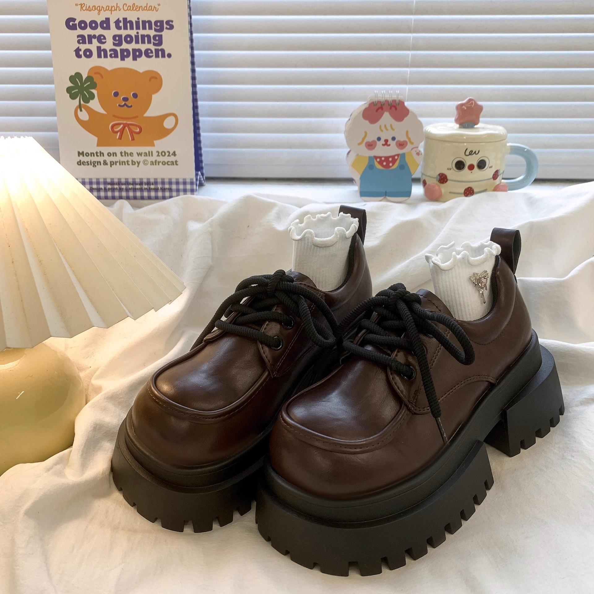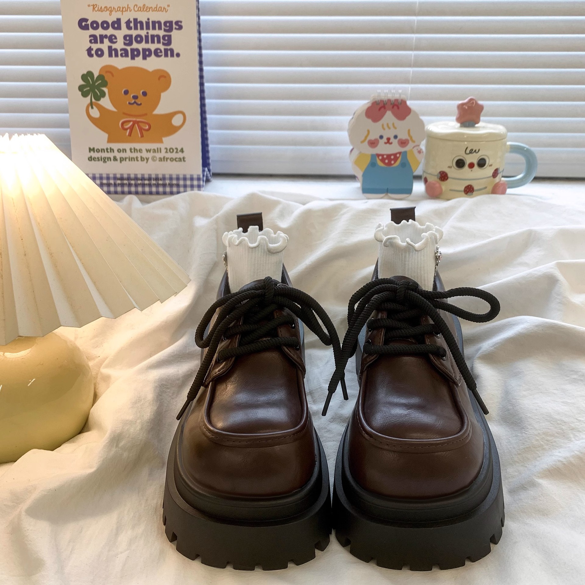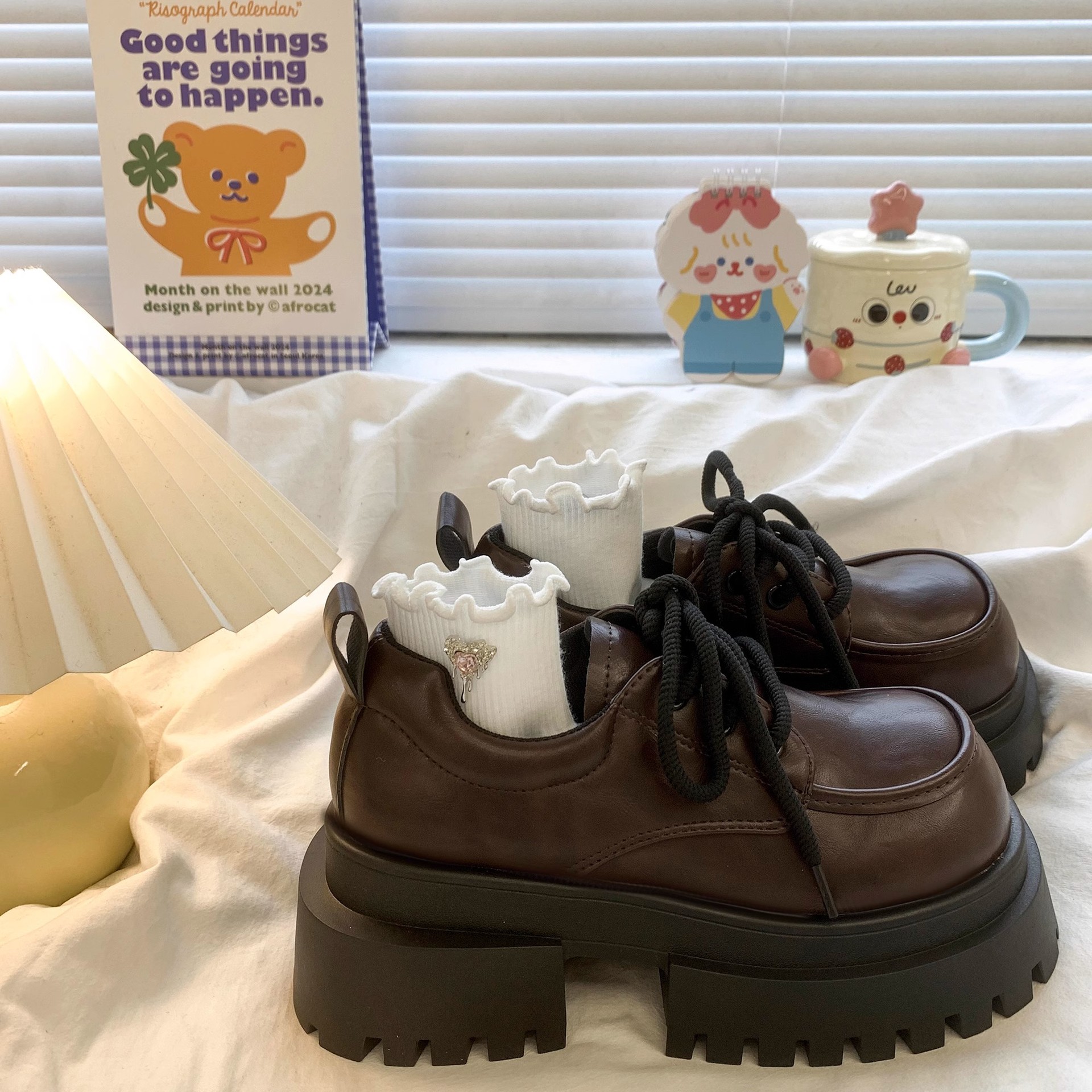 여성용 빅 헤드 레이스 업 소형 가죽 신발 2025 봄 여름 새로운 두꺼운 밑창 대학 스타일 복고풍 jk 로퍼 정품 가죽 신발스토어 가기