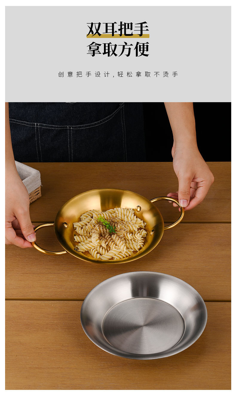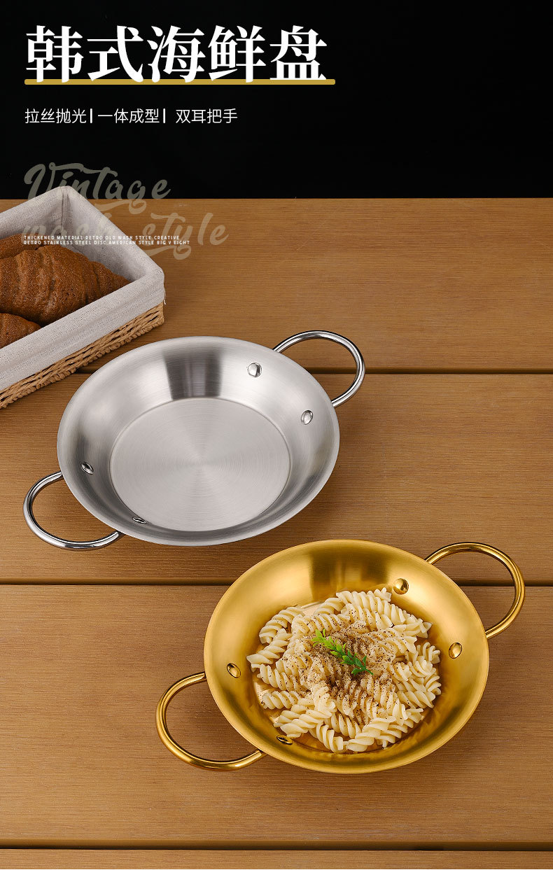 한국식 두꺼운 해산물 접시 스테인레스 스틸 바이나럴 플레이트 가정용 서양 식품 플레이트 가재 프렌치 프라이 프라이드 치킨 작은 푸드 플레이트스토어 가기