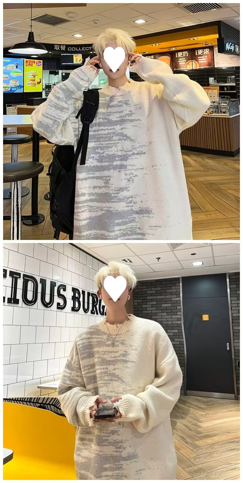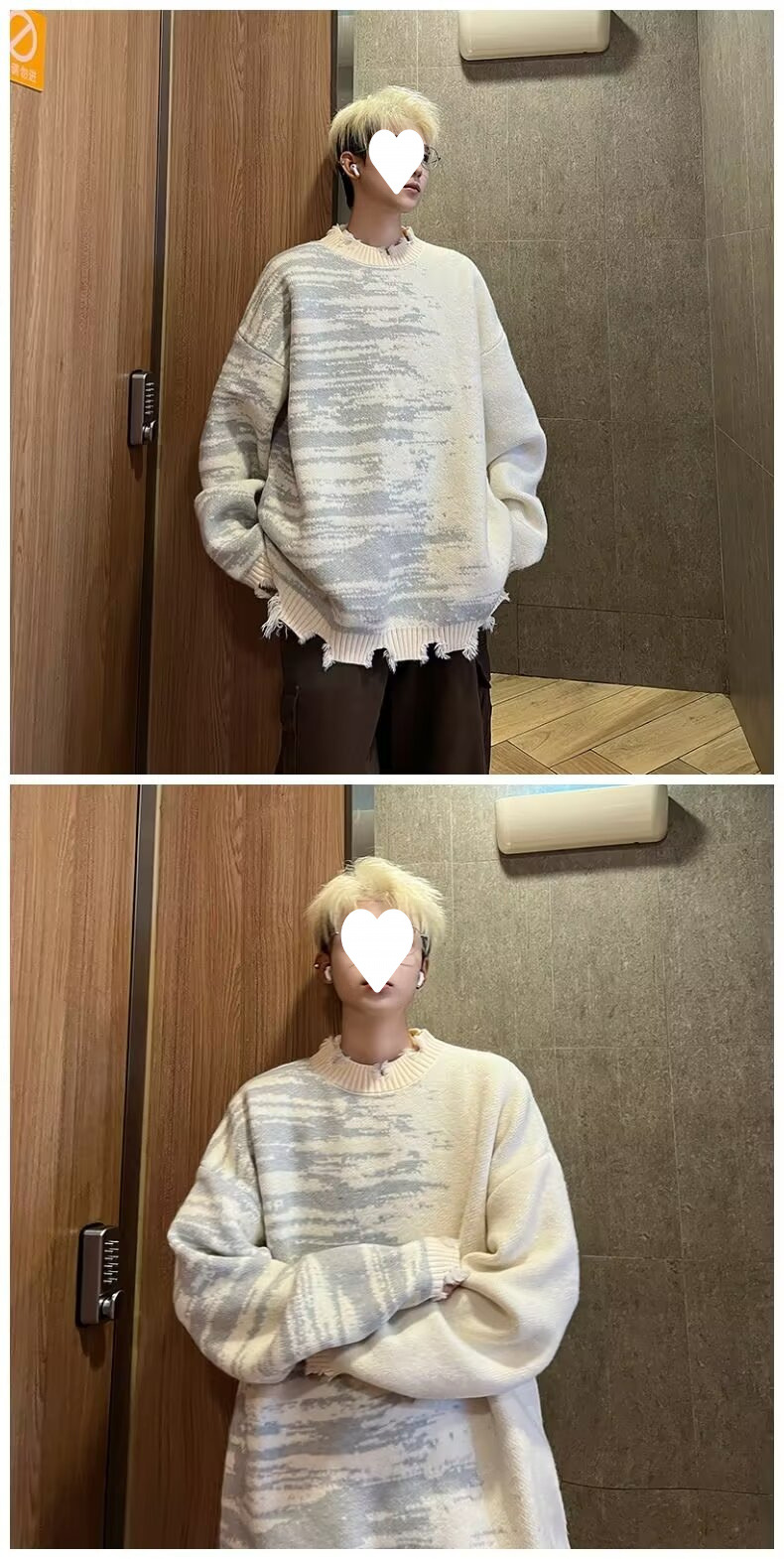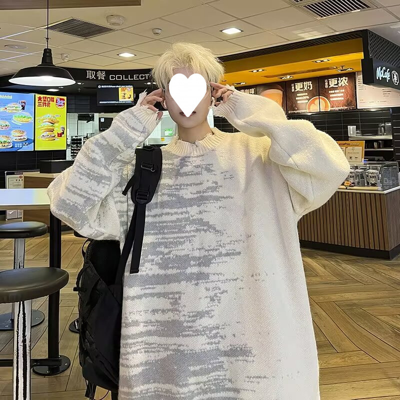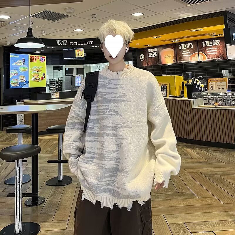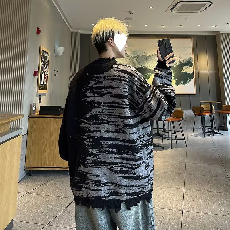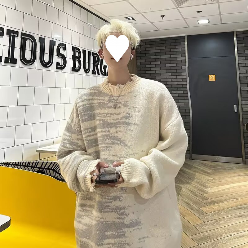 잘 생긴 구멍 디자인 트렌디 한 브랜드 대비 컬러 크루 넥 스웨터 남성 가을과 겨울 커플의 최고 느슨한 니트 풀오버 재킷스토어 가기