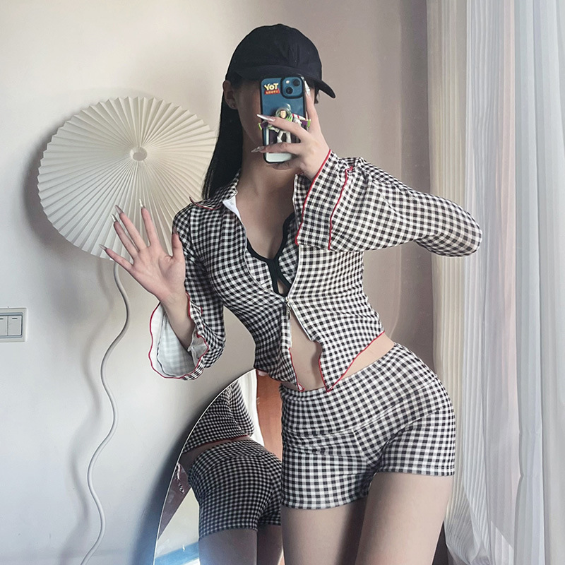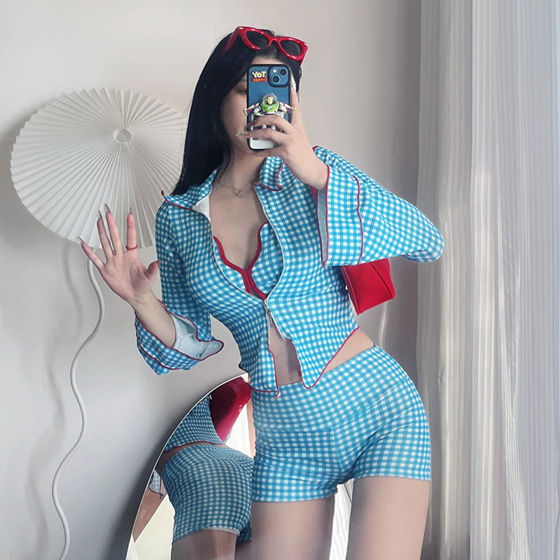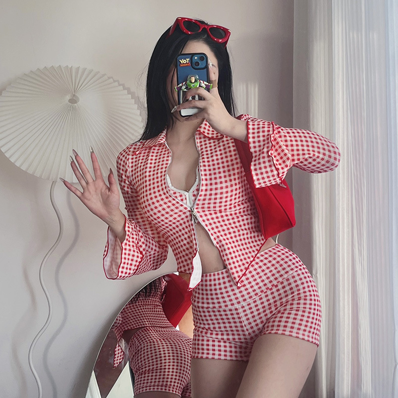 일본과 한국 스타일의 소녀 분할 수영복 여성의 섹시한 푸시 업 비키니 신선 모양의 격자 무늬 긴팔 외부 셔츠 슬림핏 벨리 커버 수영복스토어 가기