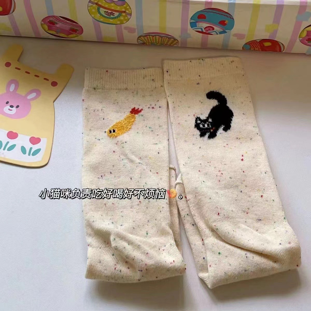 고양이 개 튀김 포인트 원사 봄 여름 가을 양말 여성의 중간 배럴 패션 귀여운 만화 양말 어린이 중간 배럴