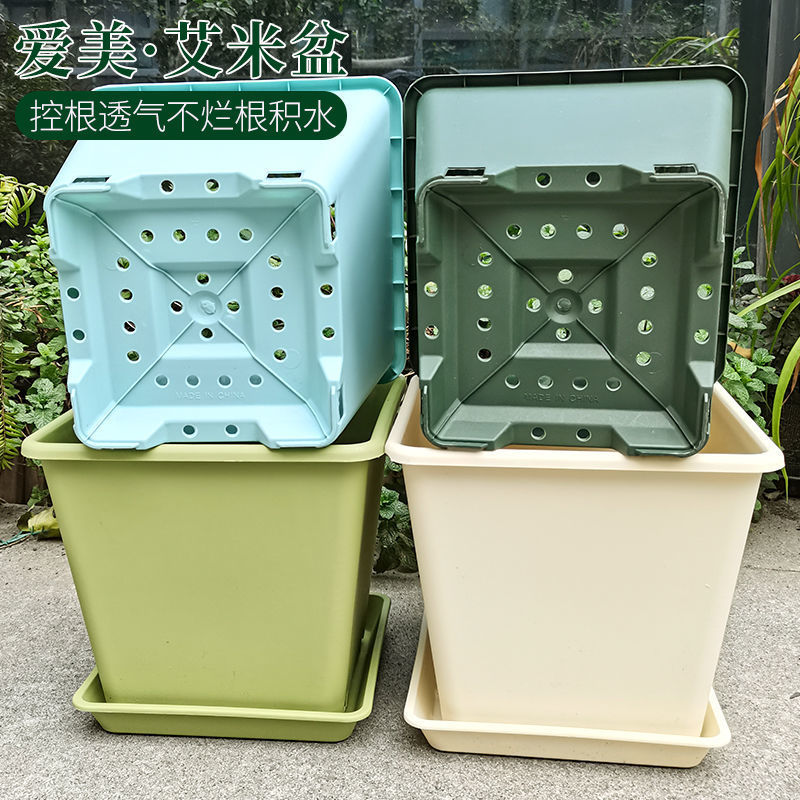 Aimei 꽃 냄비 플라스틱 꽃 냄비 두꺼운 수지 광장 뿌리 제어 냄비 녹색 식물 꽃 크고 중간 스몰 사이즈 통기성 Fang Ping 실행