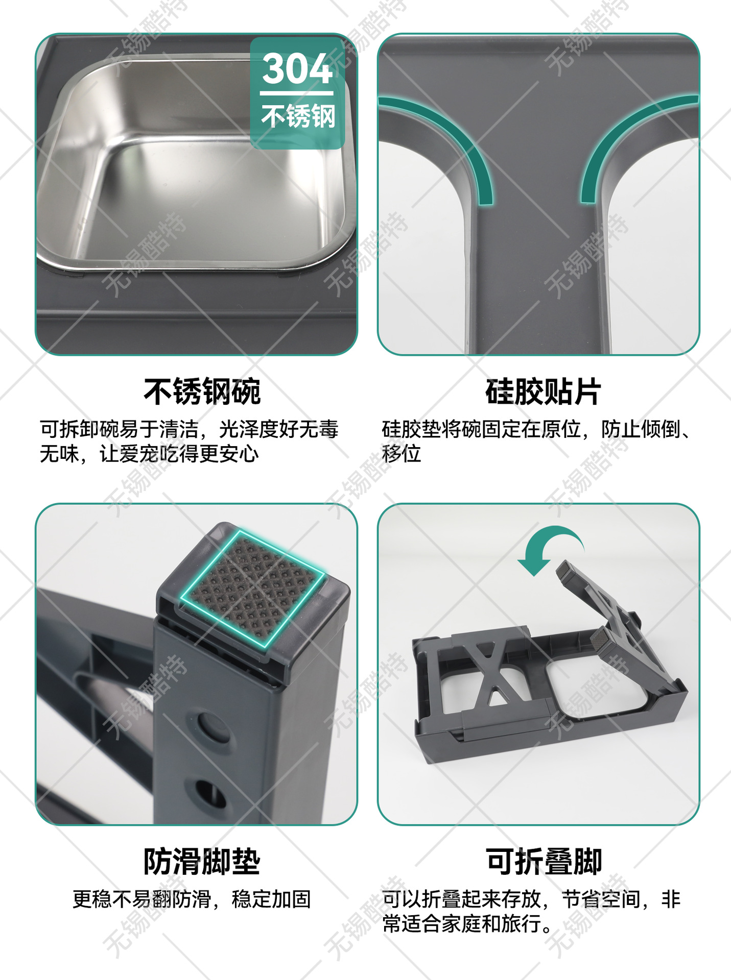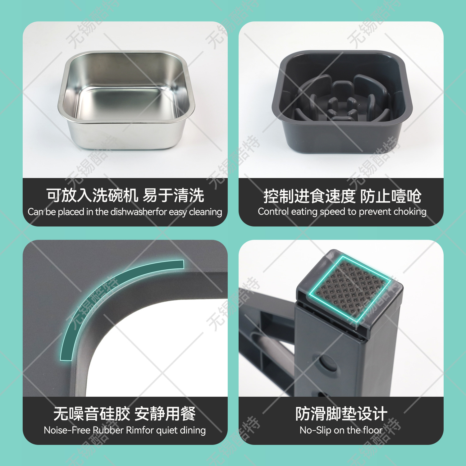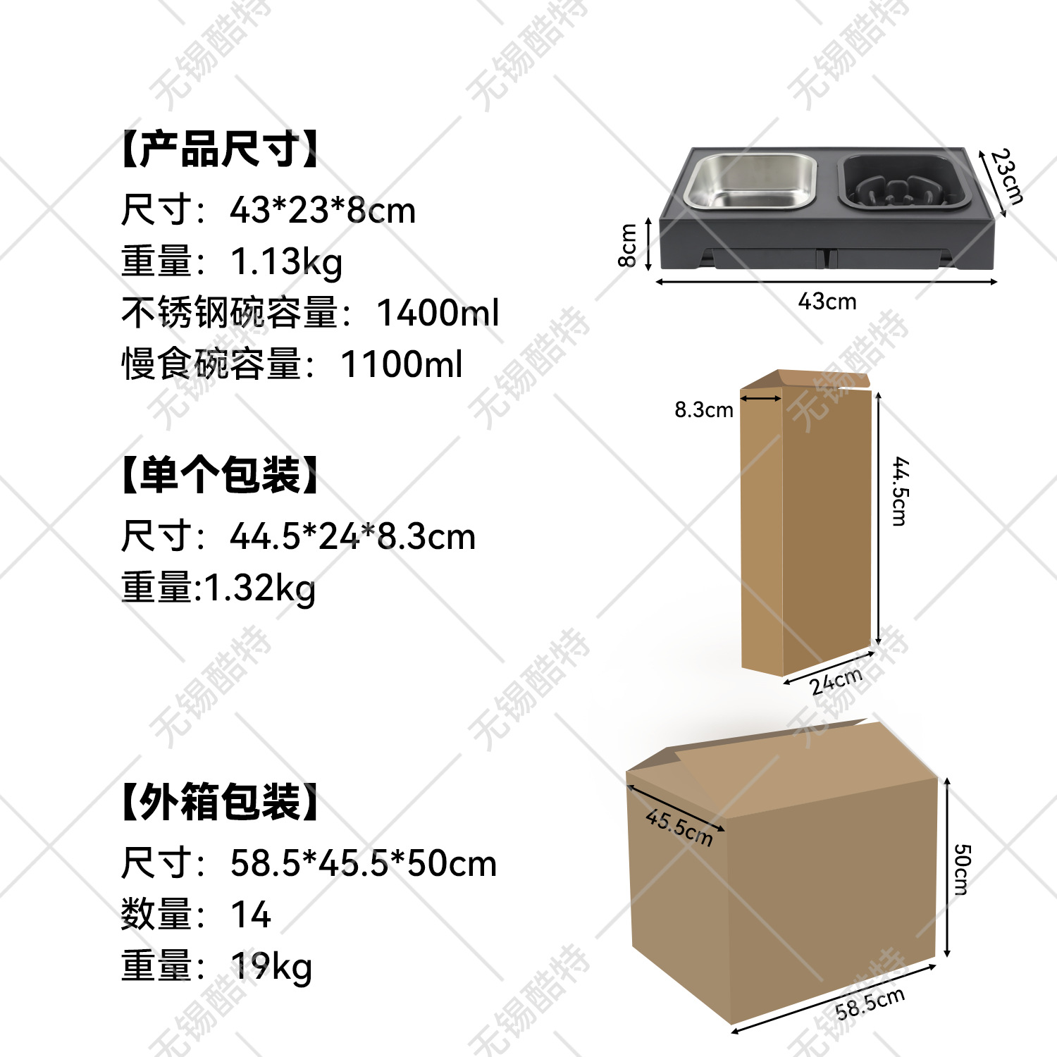 狗碗容量/Capacity:慢食碗1100ml,不锈钢碗1400ml