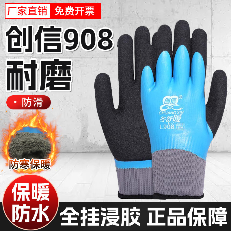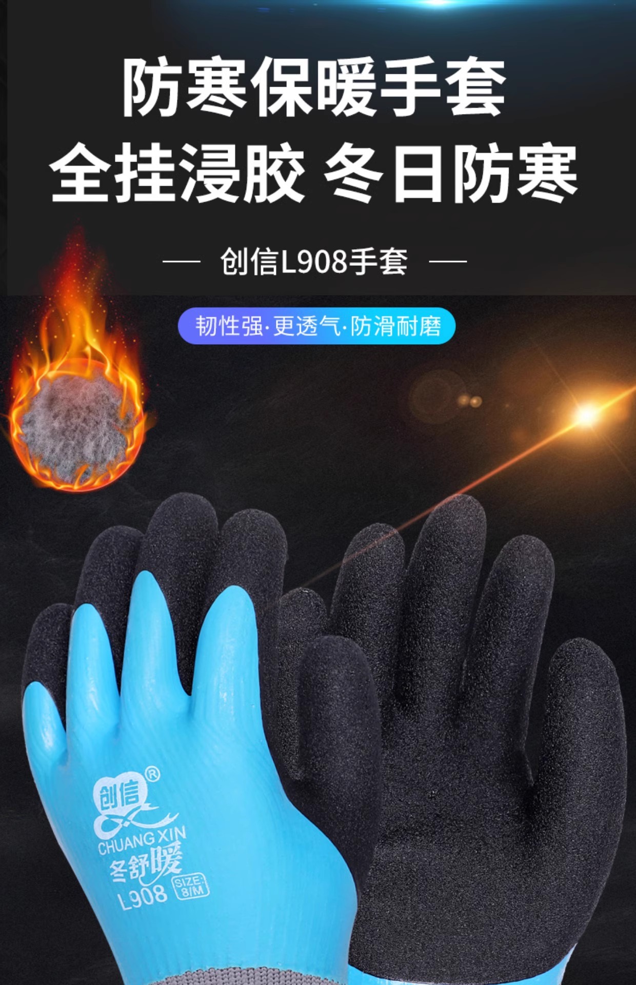 Chuangxin L908 따뜻한 장갑 겨울 방수 부동액 가득 차있는 미끄럼 방지 마모 건설 현장 보호 장갑