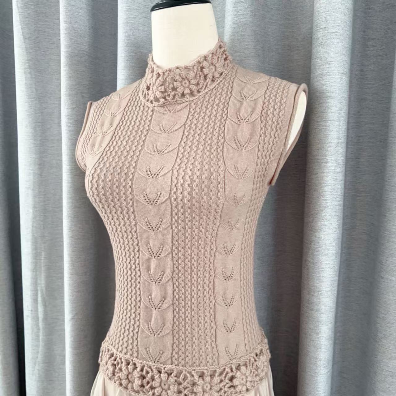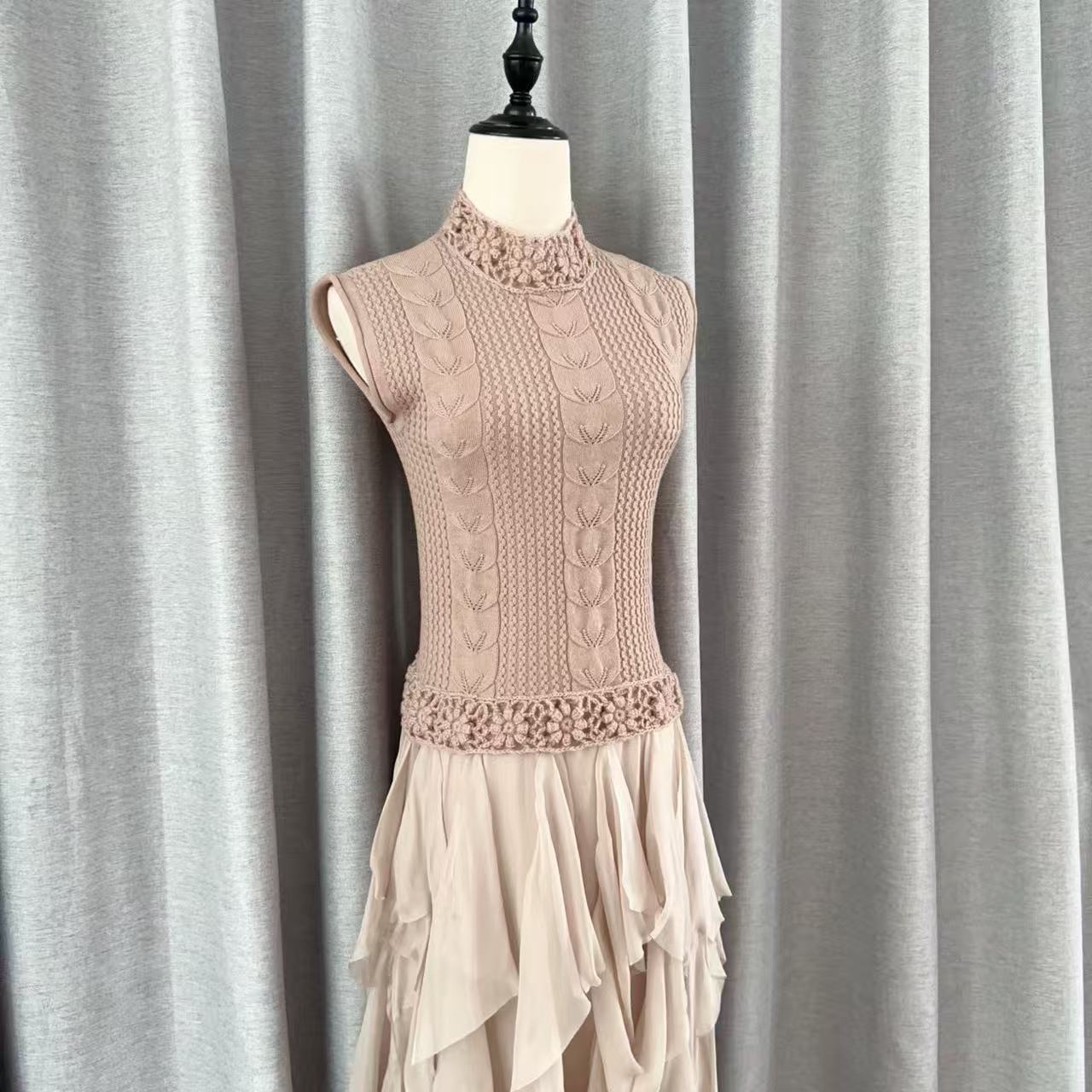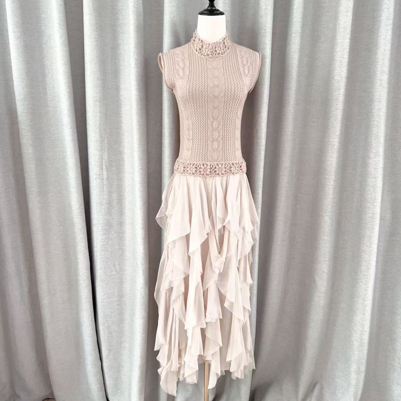 재고 있음/2026 니트 패치워크 원피스 여성 가을 겨울 우아한 솔리드 컬러 아름다운 롱 원피스