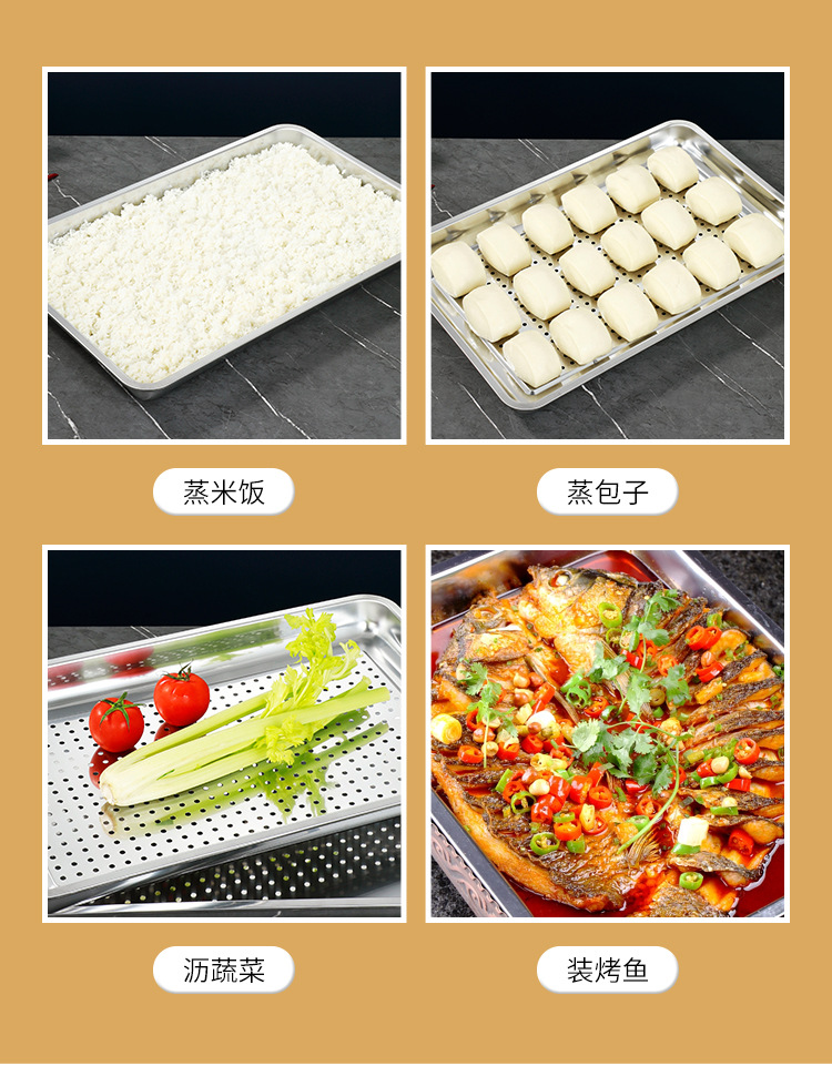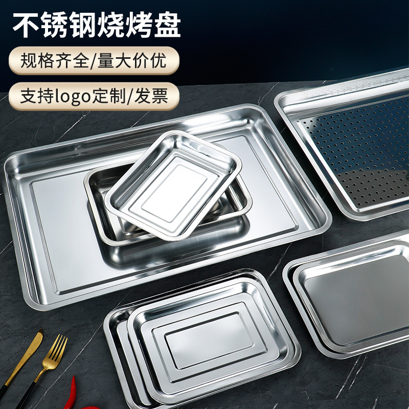 스테인리스 사각 접시 평평한 바닥 직사각형 트레이 차 트레이 오일 필터 바베큐 트레이 생선구이 트레이 상업용 밥 트레이
