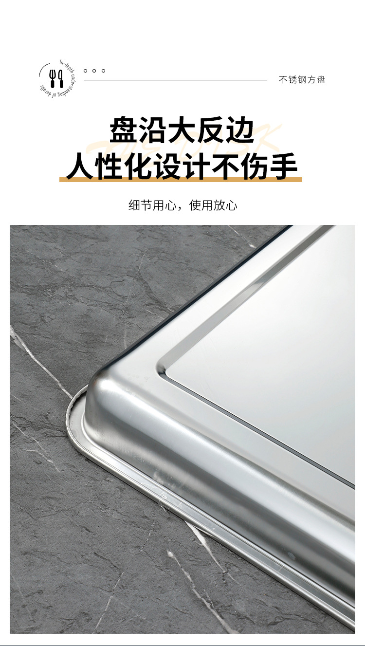 스테인리스 사각 접시 평평한 바닥 직사각형 트레이 차 트레이 오일 필터 바베큐 트레이 생선구이 트레이 상업용 밥 트레이스토어 가기