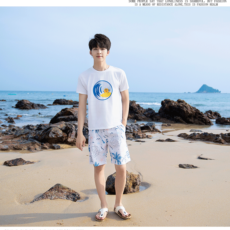 커플의 해변 바지 해변 휴가 캐주얼 스포츠 느슨한 탄성 빠른 건조 반바지 남성용 수용성 태국 대형 바지스토어 가기