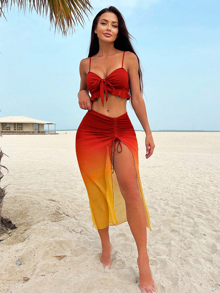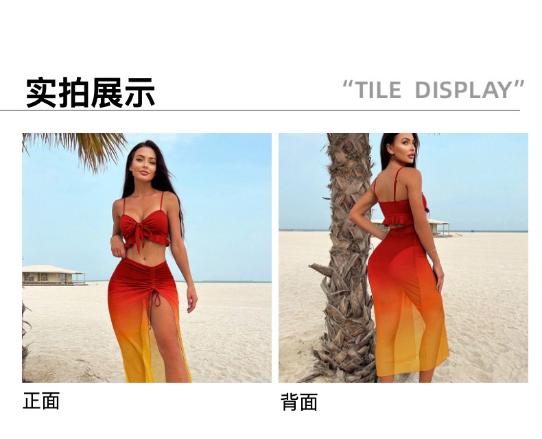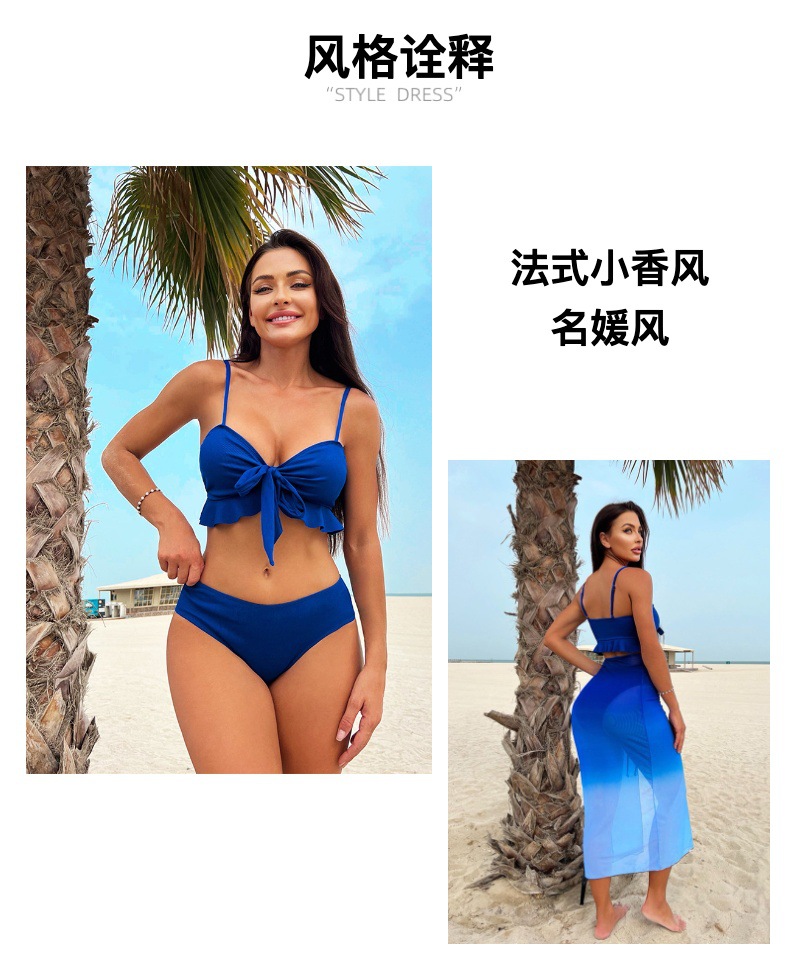 2025 새로운 스타일 스플릿 3 피스 보수적 인 비키니 스커트 메쉬 섹시한 유럽과 미국의 아마존 스타일 수영복 도매스토어 가기