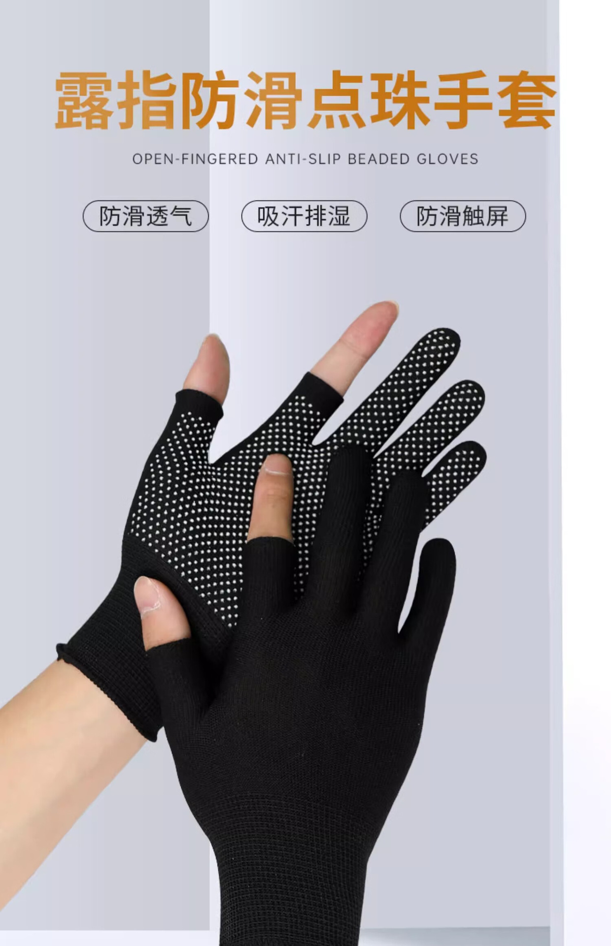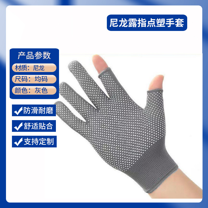 나일론 오픈 핑거 포인트 플라스틱 절반 누출 손가락 택배 낚시 장갑 미끄럼 방지 터치 스크린 분배 장갑 도매 HS4스토어 가기