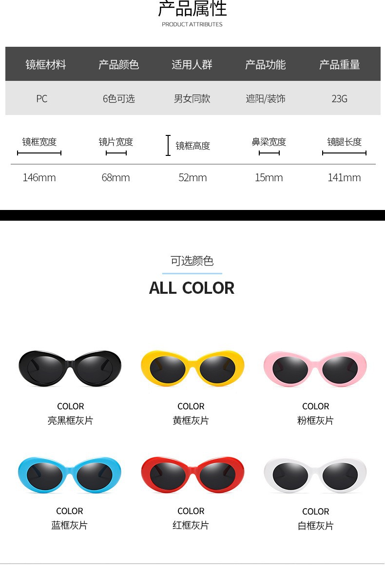 유럽과 미국의 새로운 타원형 선글라스 대형 프레임 선글라스 외계인 힙합 안경 안티 자외선 차양 얼굴 작은 얼굴