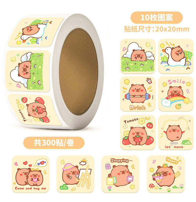 카피 발라 씰 스티커 귀여운 만화 카피 바라 손 계정 장식 스티커 어린이 DIY 롤 스티커 접착 스티커스토어 가기