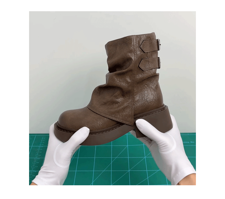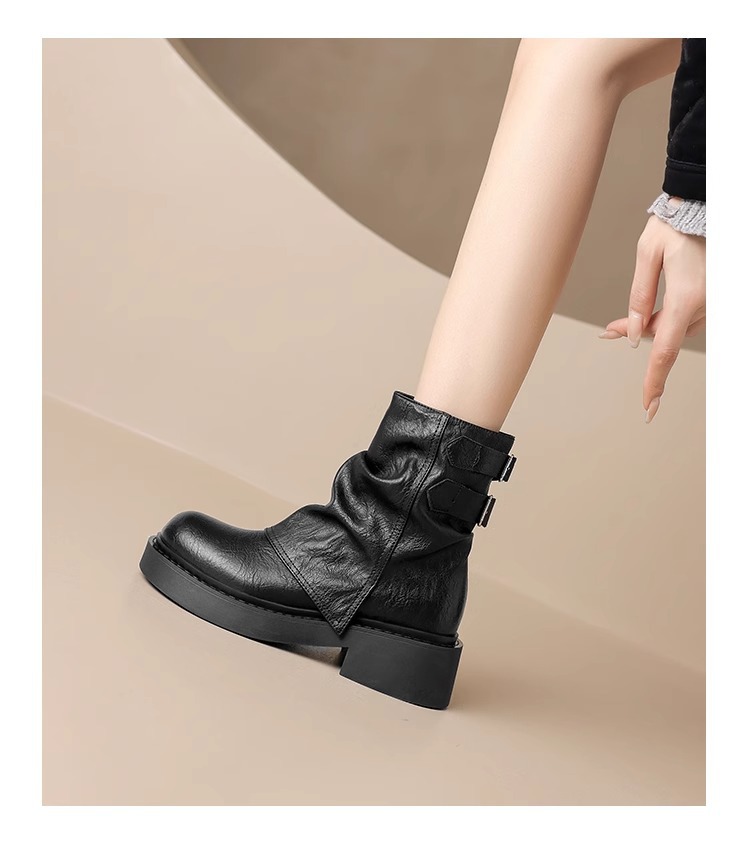 Fuji Shoe Shop Maillard 짧은 부츠 여성 봄, 가을 싱글 부츠 2025 새로운 두꺼운 밑창 갈색 바지 기사 마틴 부츠