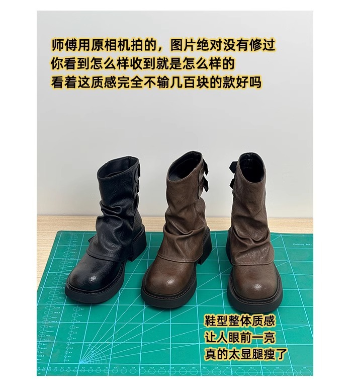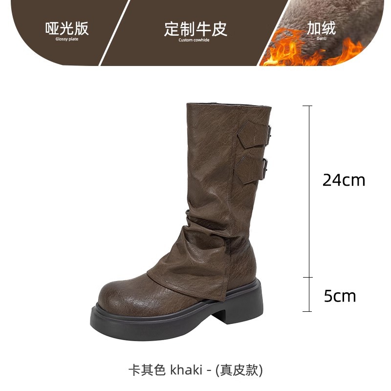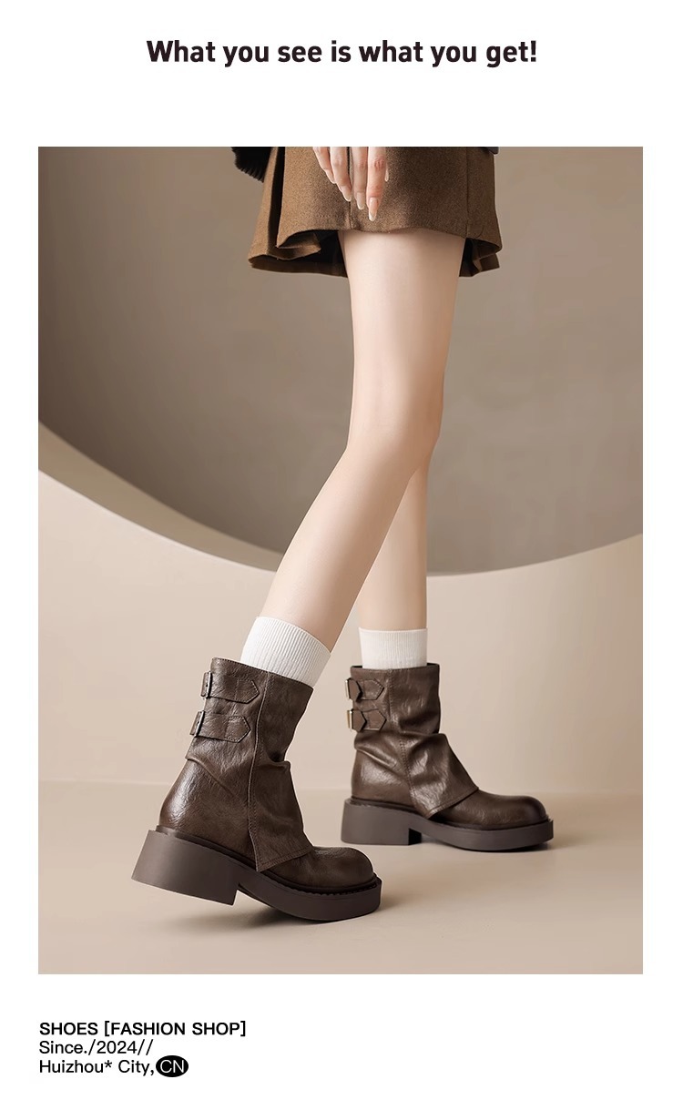 Fuji Shoe Shop Maillard 짧은 부츠 여성 봄, 가을 싱글 부츠 2025 새로운 두꺼운 밑창 갈색 바지 기사 마틴 부츠스토어 가기
