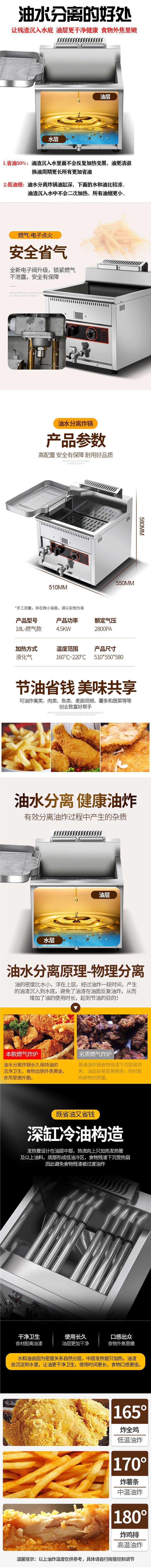 데스크탑 오일-물 분리 프라이어 상업용 가스 대용량 프렌치 프라이 치킨 볶음 스트링 자동 온도 제어 프라이어