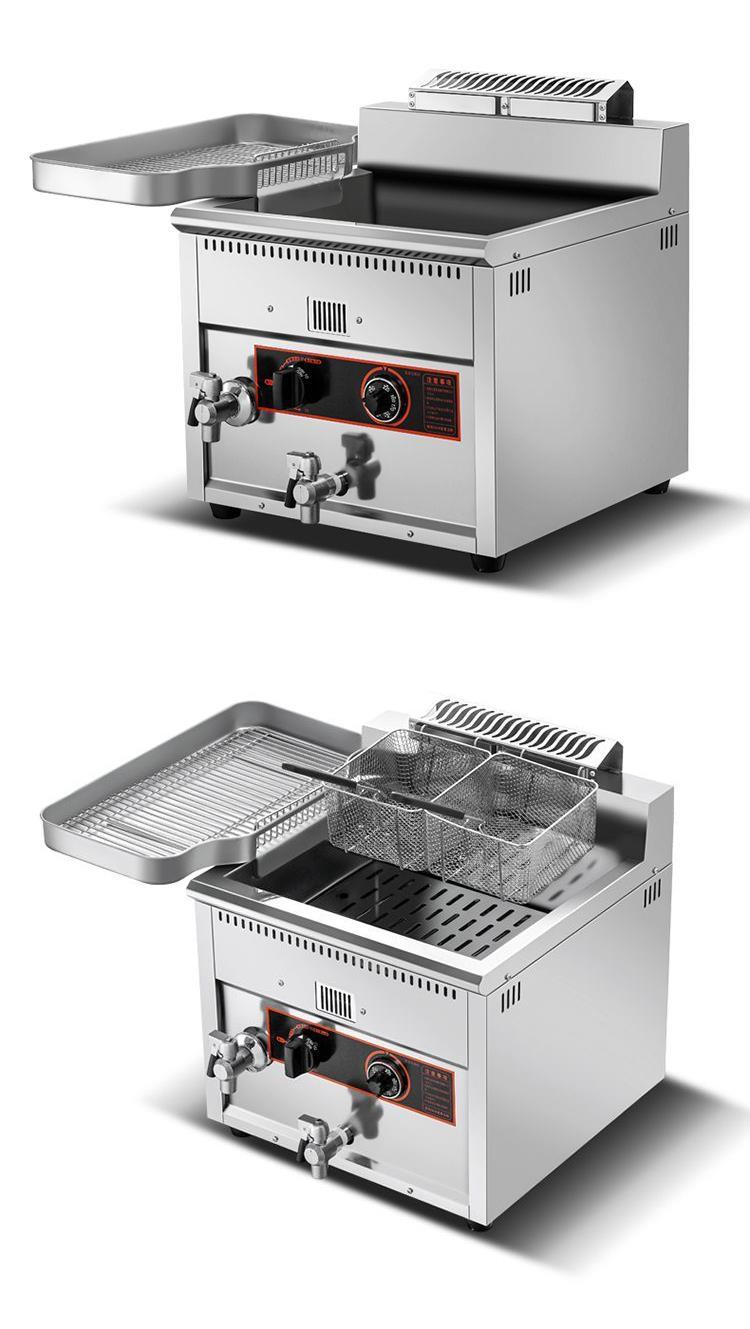 데스크탑 오일-물 분리 프라이어 상업용 가스 대용량 프렌치 프라이 치킨 볶음 스트링 자동 온도 제어 프라이어스토어 가기